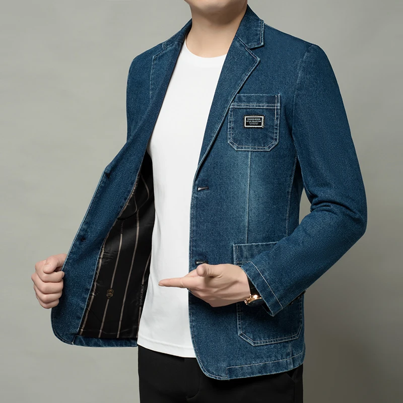 Wiaofellas  -  New Mens Denim Blazer Coat Fashion Casual Denim Jacket Men Cotton Vintage Black Blue Denim Jacket Coat Men Jeans Blazers