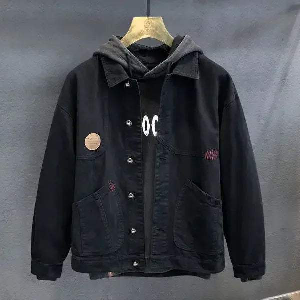 WIAOFELLAS - Patchwork Denim Jacket Men Jean Jacket Streetwear Hip Hop Loose Coats Men Clothing Spring Autumn Oversized Outerwear Korean Tops