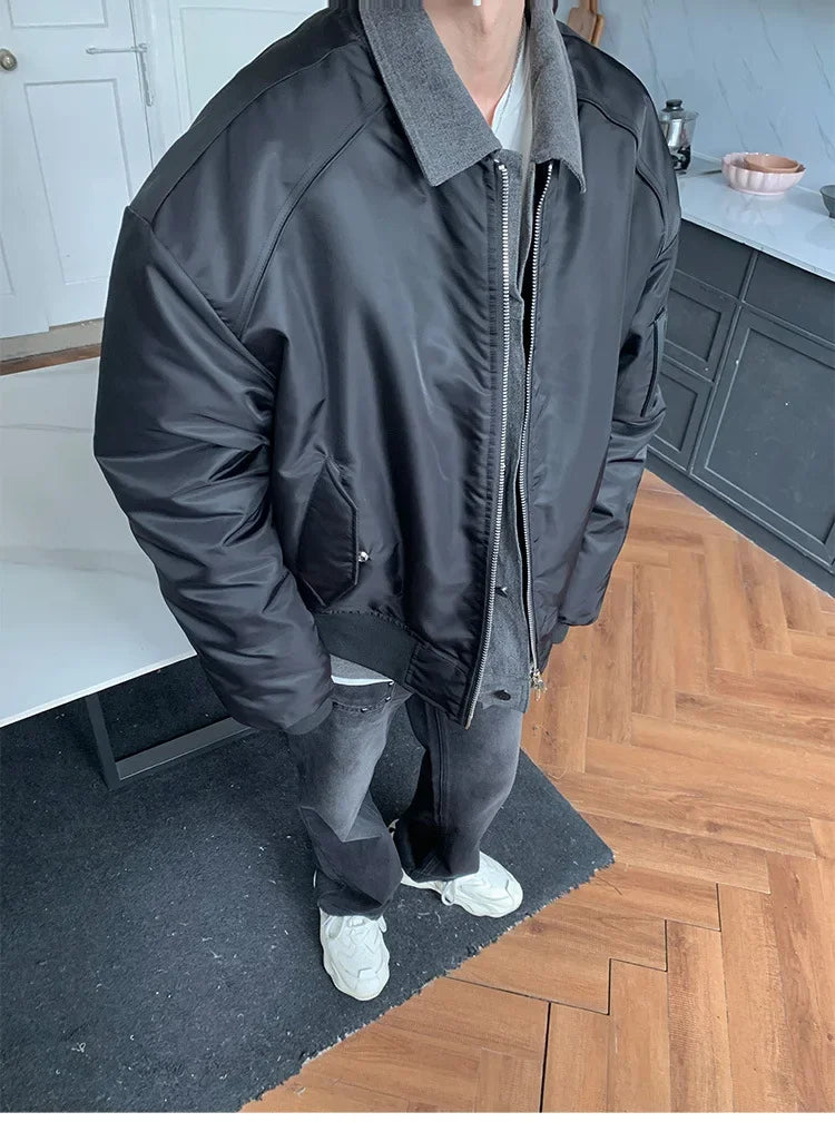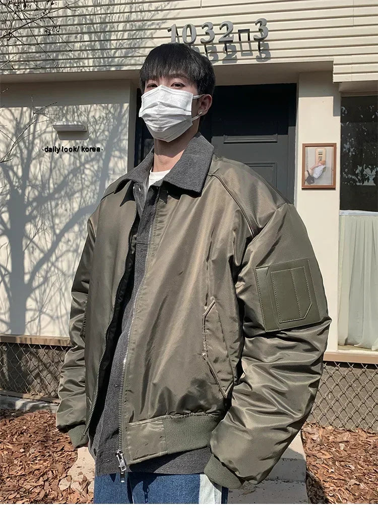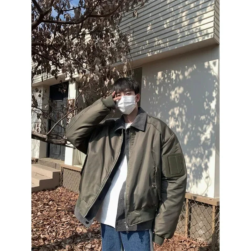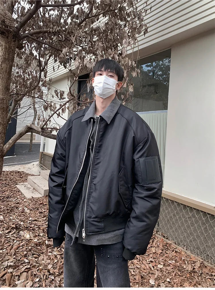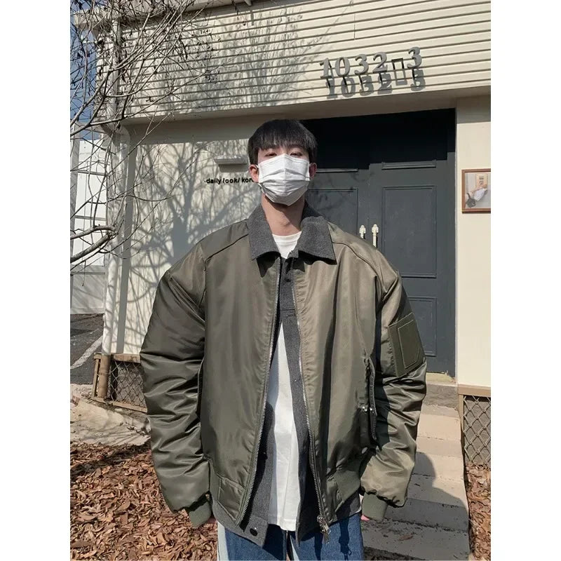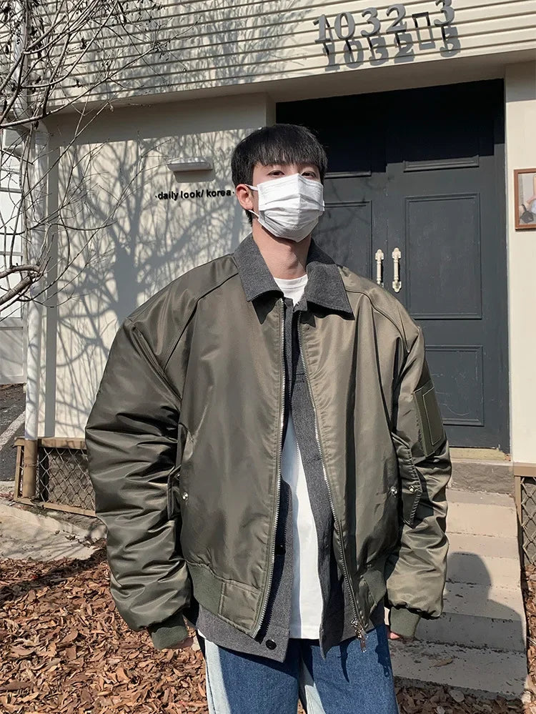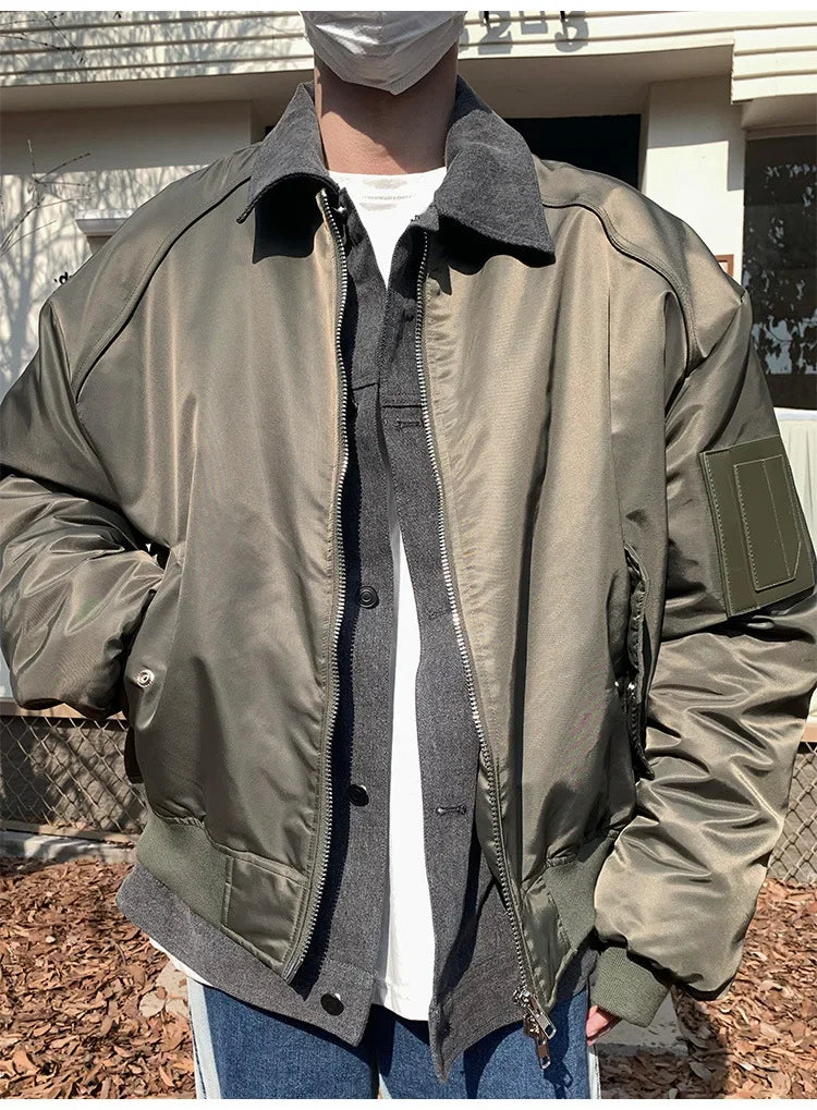 WIAOFELLAS - Premium Sense Bomber Jacket MA-1 Fall and Winter Splicing Fake Two Pieces Korean Style Coat Street Style Cotton Clothing Men New