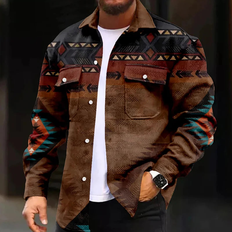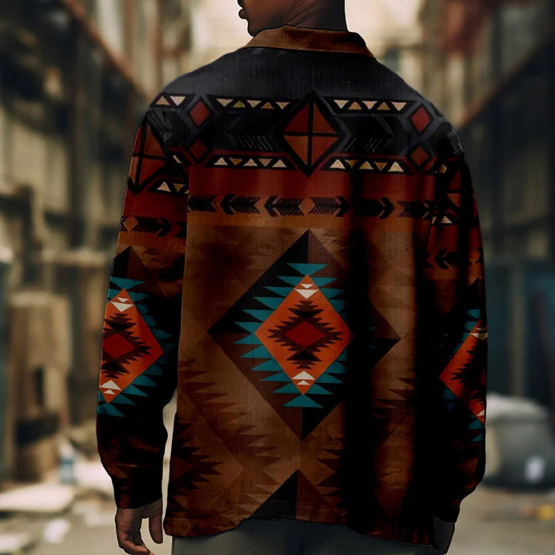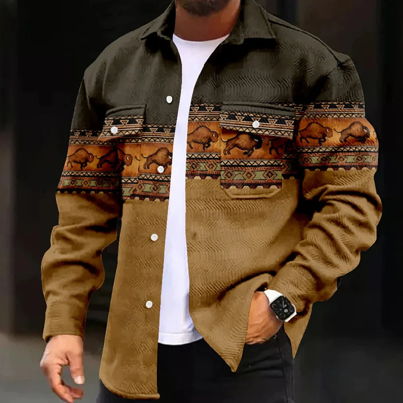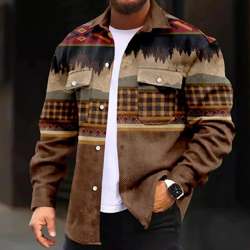 WIAOFELLAS - Retro Men's Patchwork Print Jackets Fashion Man Casual Coat Autumn Winter Men Lapel Single Breasted Pocket Loose Outerwears