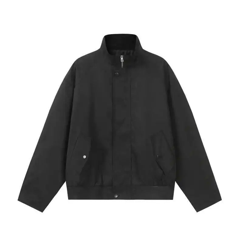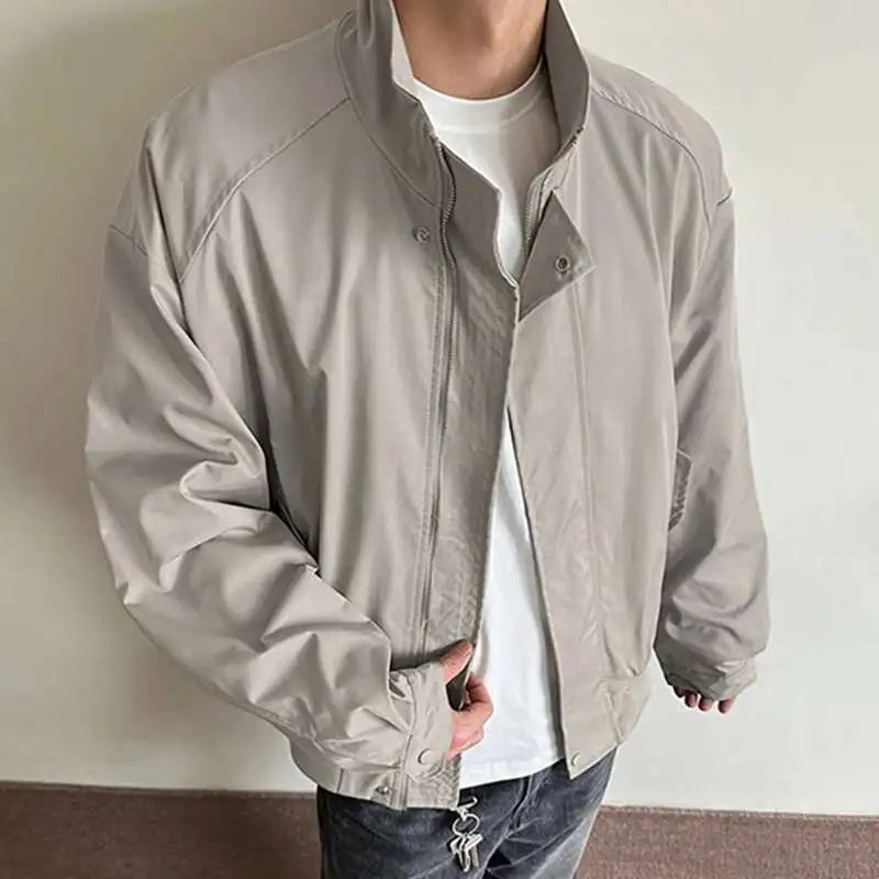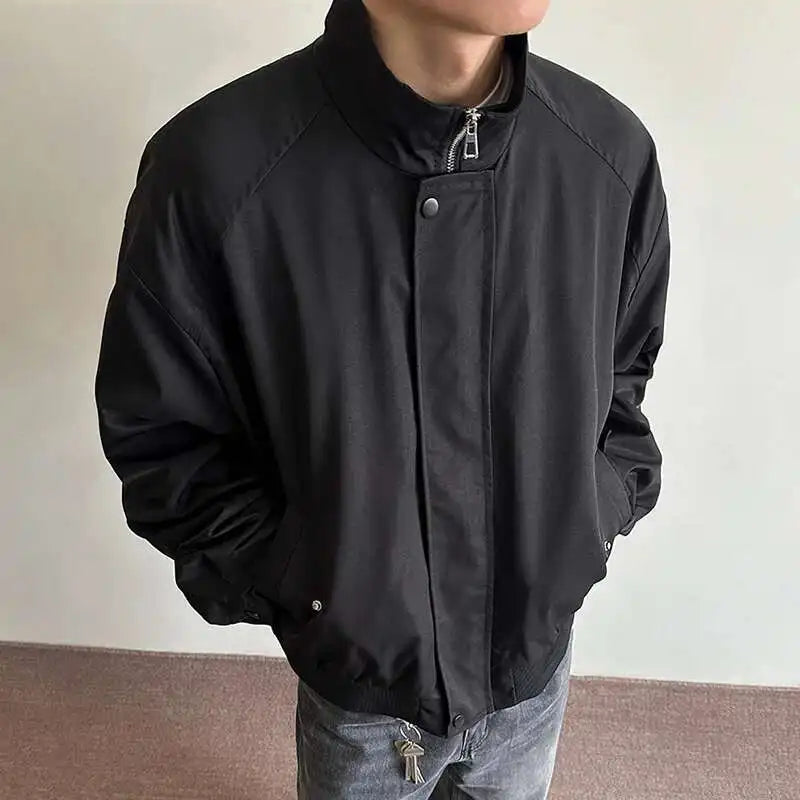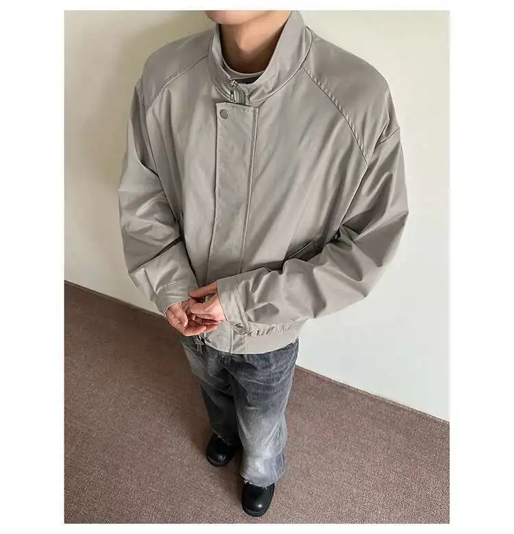 WIAOFELLAS - Simple Men's Jackets Stand Collar Solid Color Casual Pocket Coats Spring Loose Streetwear Male Tops New Stylish