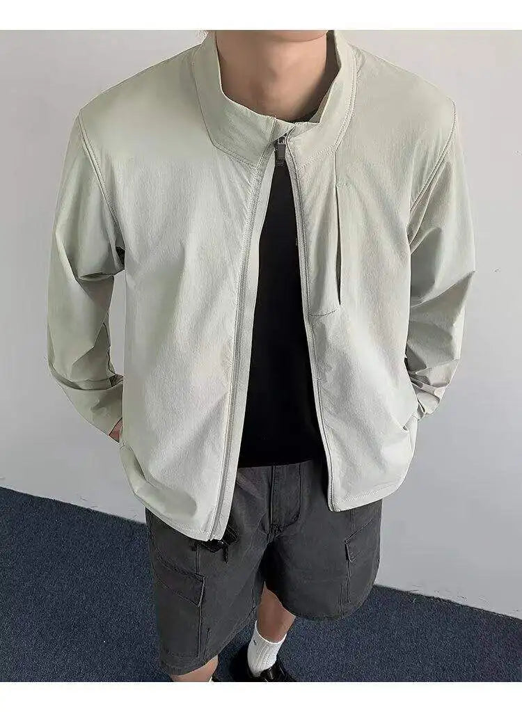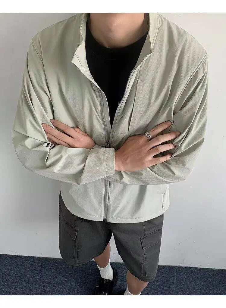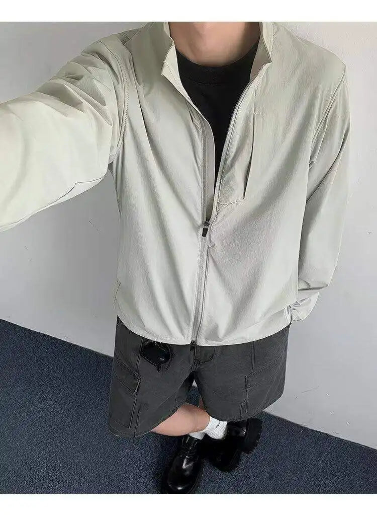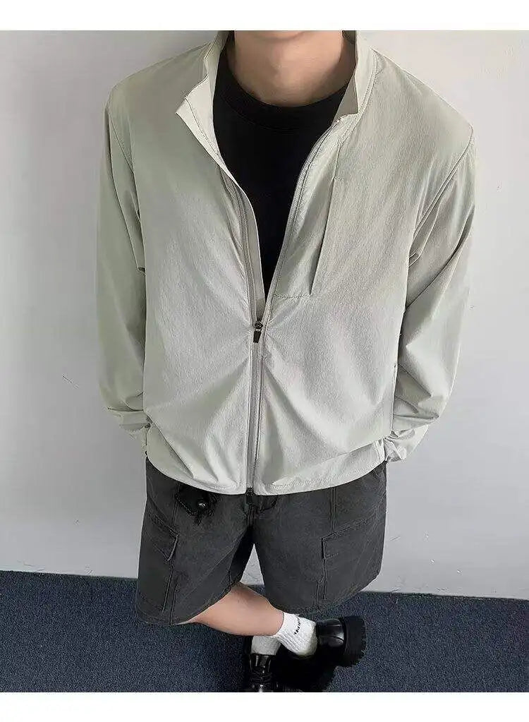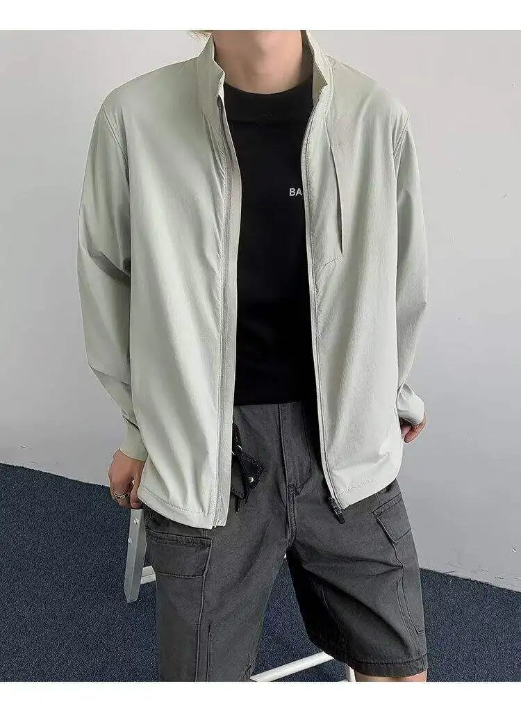 WIAOFELLAS - Simple Men's Jackets Stand Collar Thin Solid Color Quick-dry Casual Sun-protective Clothing Loose Male Coats Summer