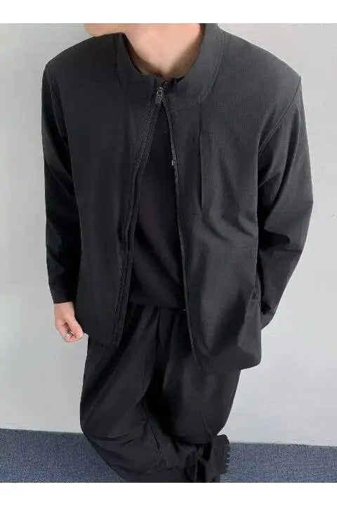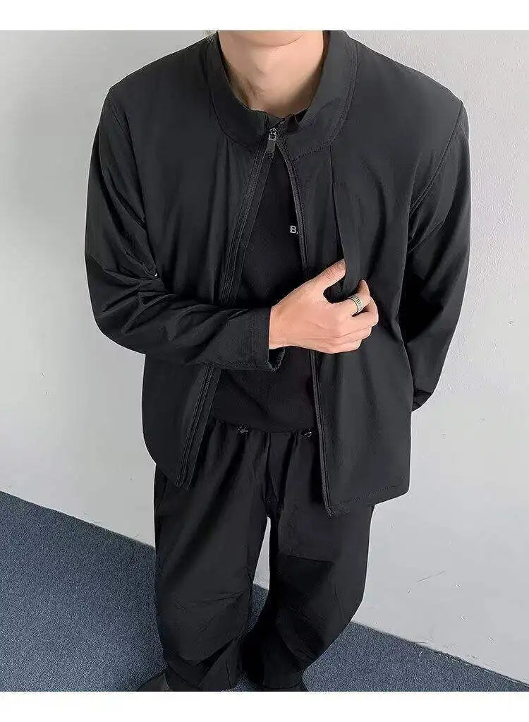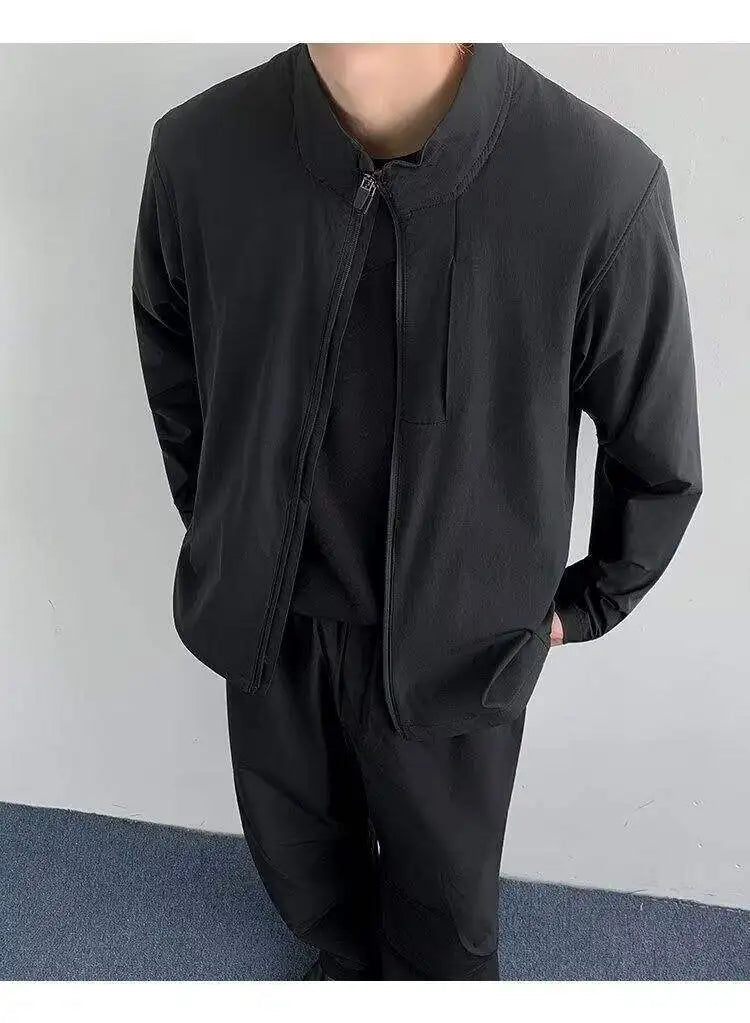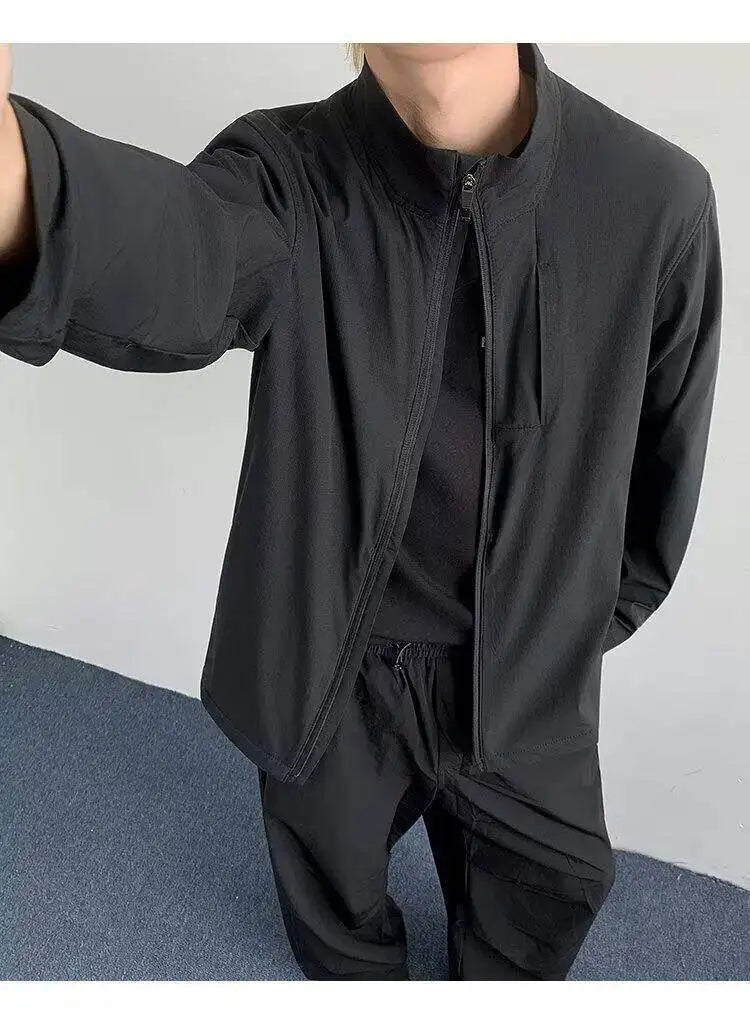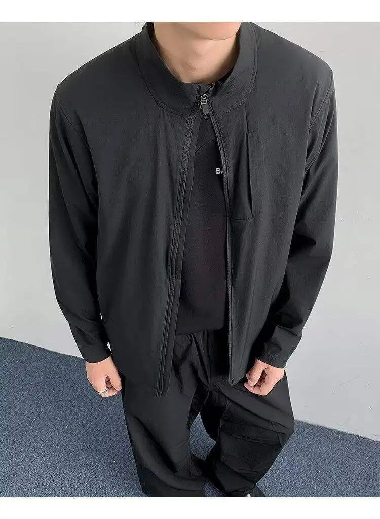 WIAOFELLAS - Simple Men's Jackets Stand Collar Thin Solid Color Quick-dry Casual Sun-protective Clothing Loose Male Coats Summer