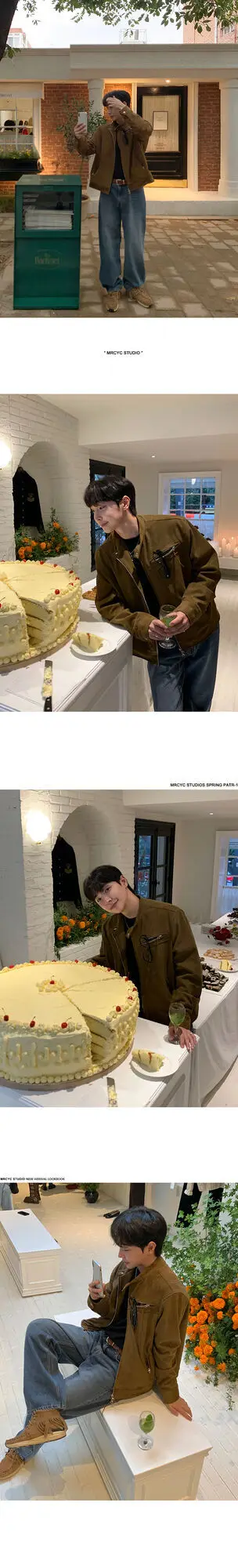 WIAOFELLAS - Solid Color Suede Stand Collar Jacket Men's Streetwear Korean Style Loose Male Coat Zipper Autumn New Fashion