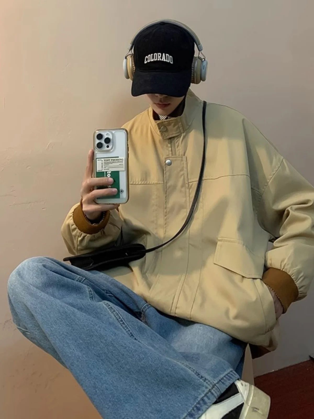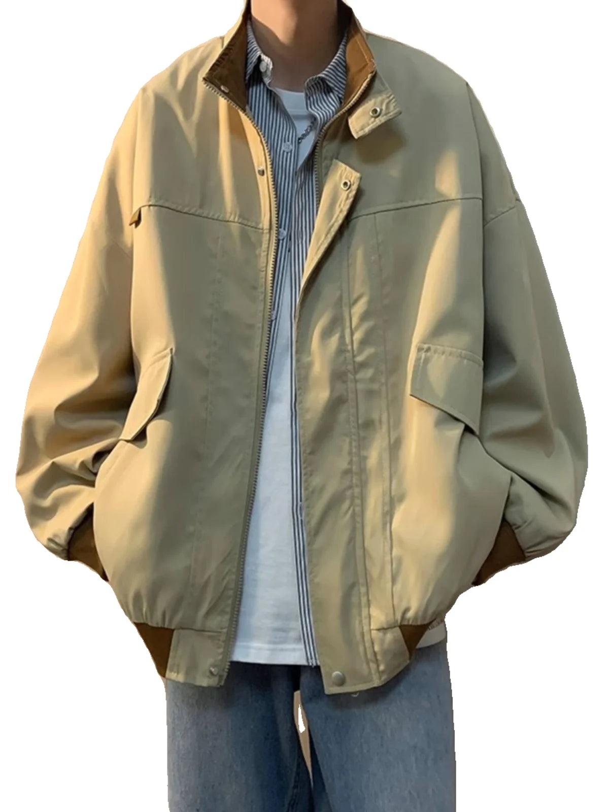 WIAOFELLAS - Spring and Autumn New Classic Simple Fashion Stand Collar Jacket Men's Casual Relaxed Comfortable Breathable Coat B115