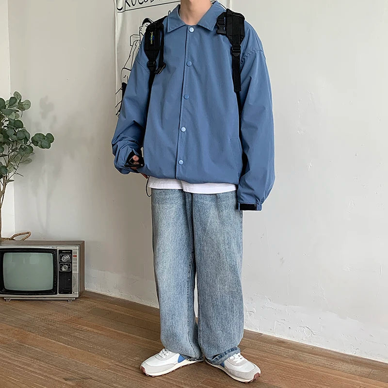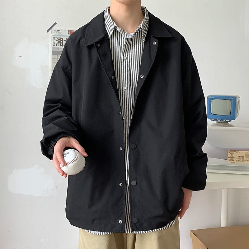 WIAOFELLAS - Spring and Autumn New Men's Fashion Urban Outdoor Sports and Casual Jacket Simple and Loose Large Lapel Zipper Coat C17