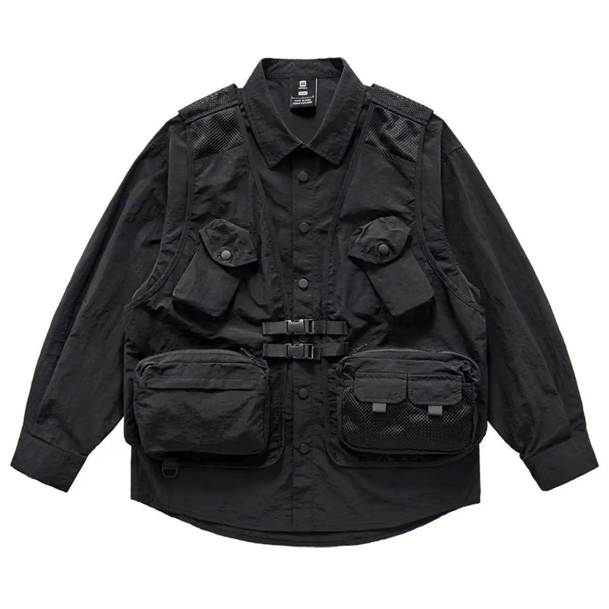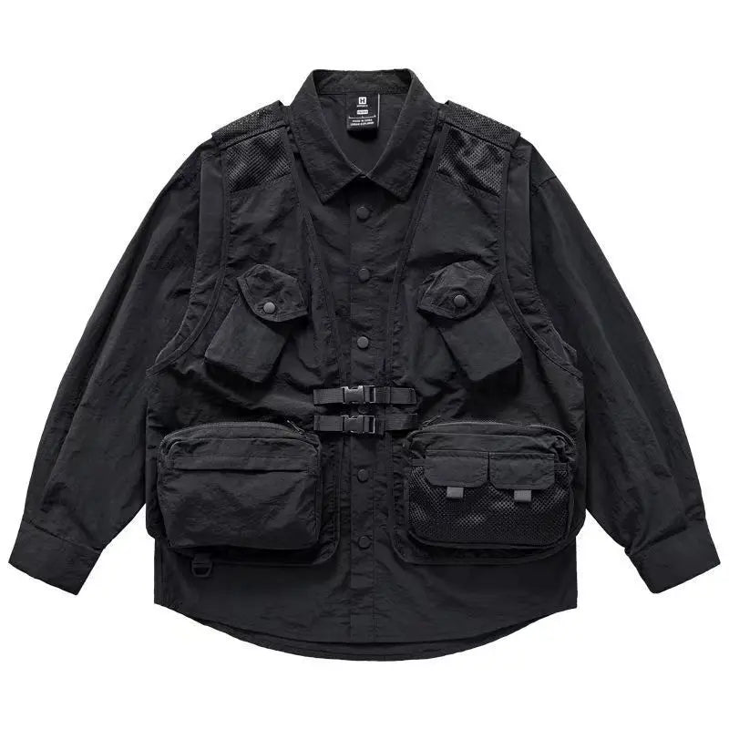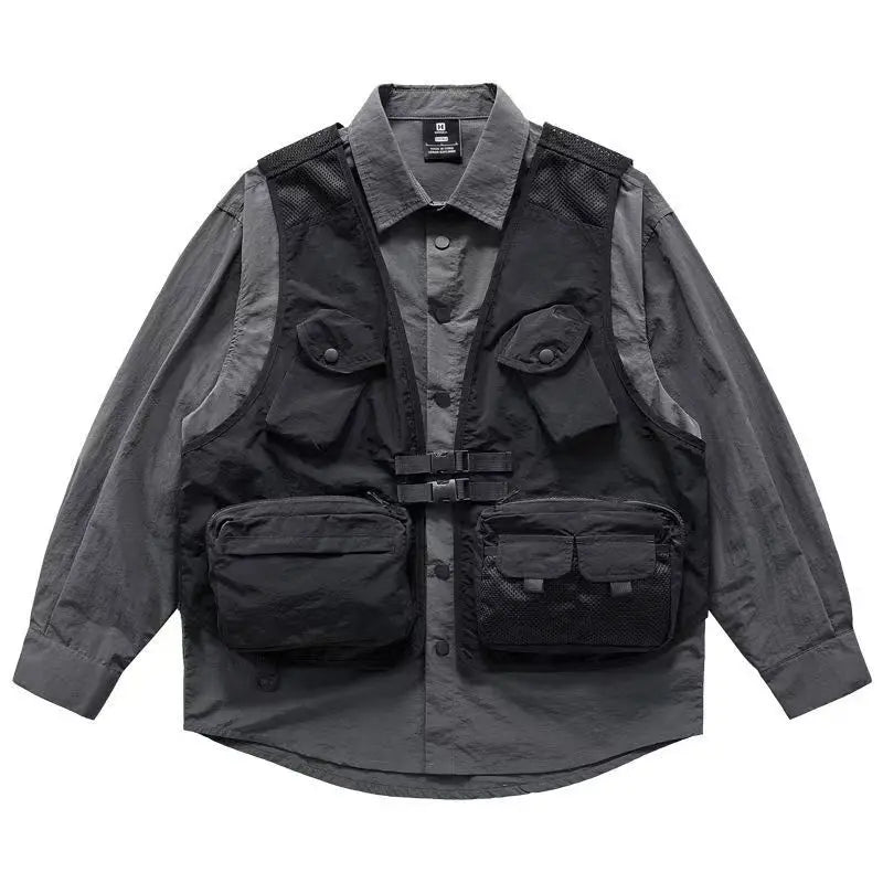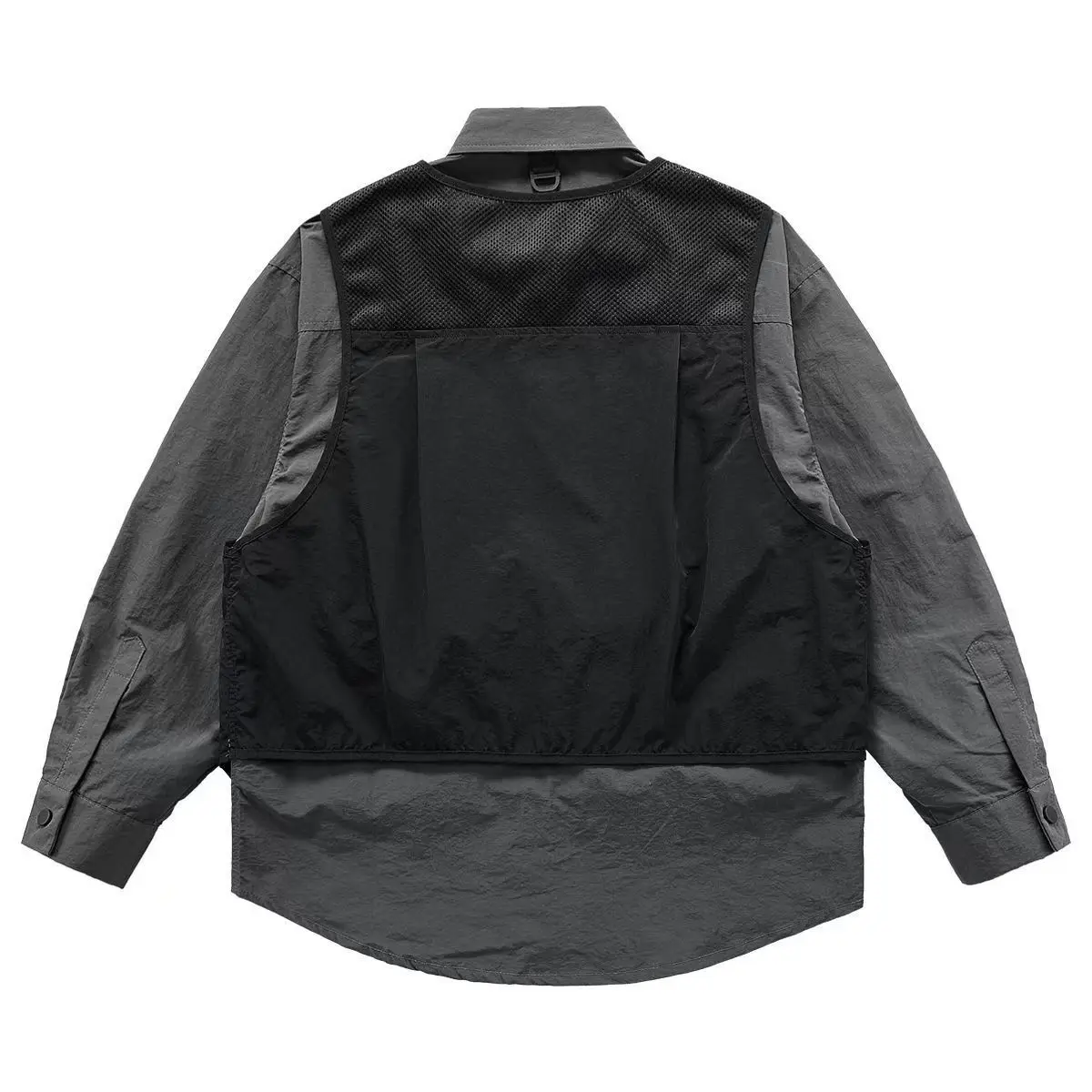 WIAOFELLAS  -  Spring Autumn Men's Fake Two piece Long Sleeve Shirt Coat Mountain Functional Jacket Multi Pocket Vest Splicing Workwear Coats
