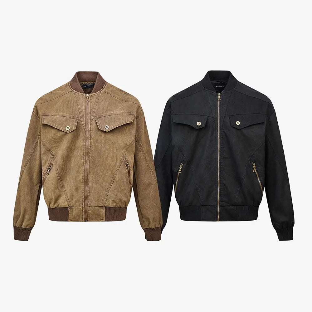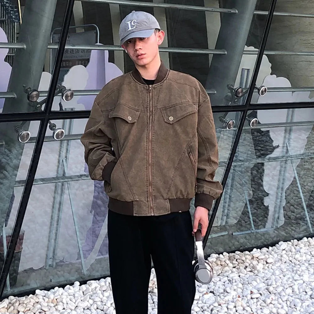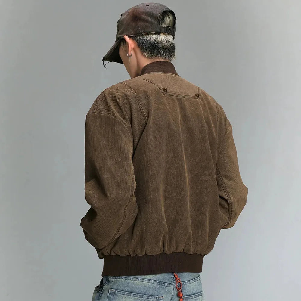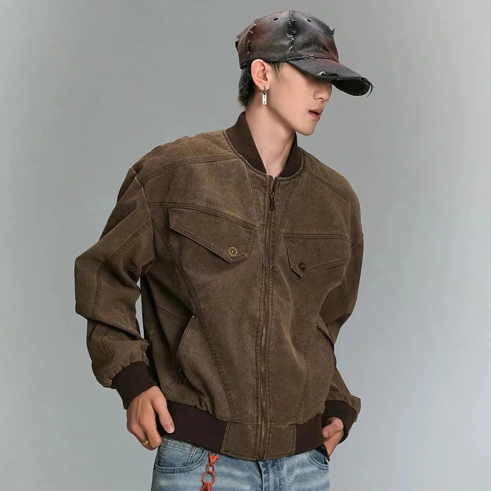 WIAOFELLAS - Streetwear Cleanfit Stand Windbreaker Corduroy Jacket for Men Front Pockets Solid Casual Loose Outwear Coat Oversized