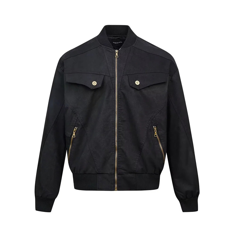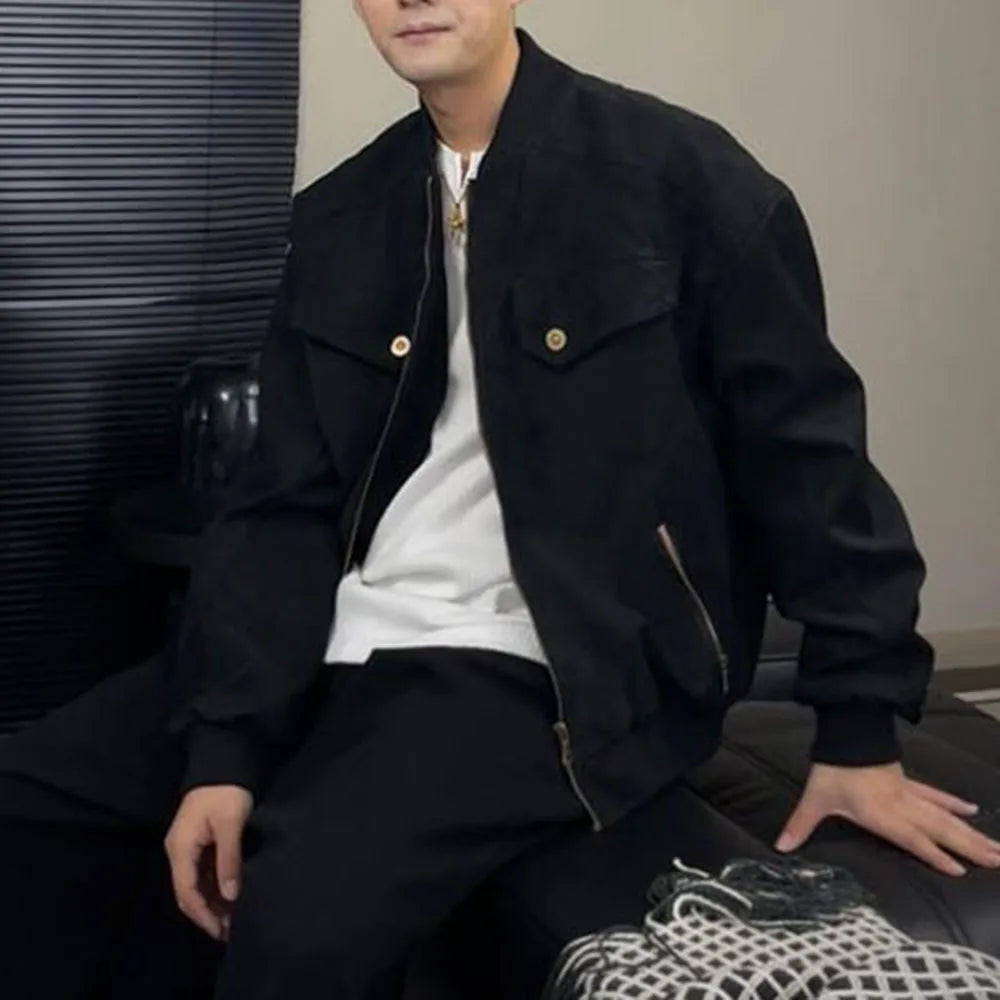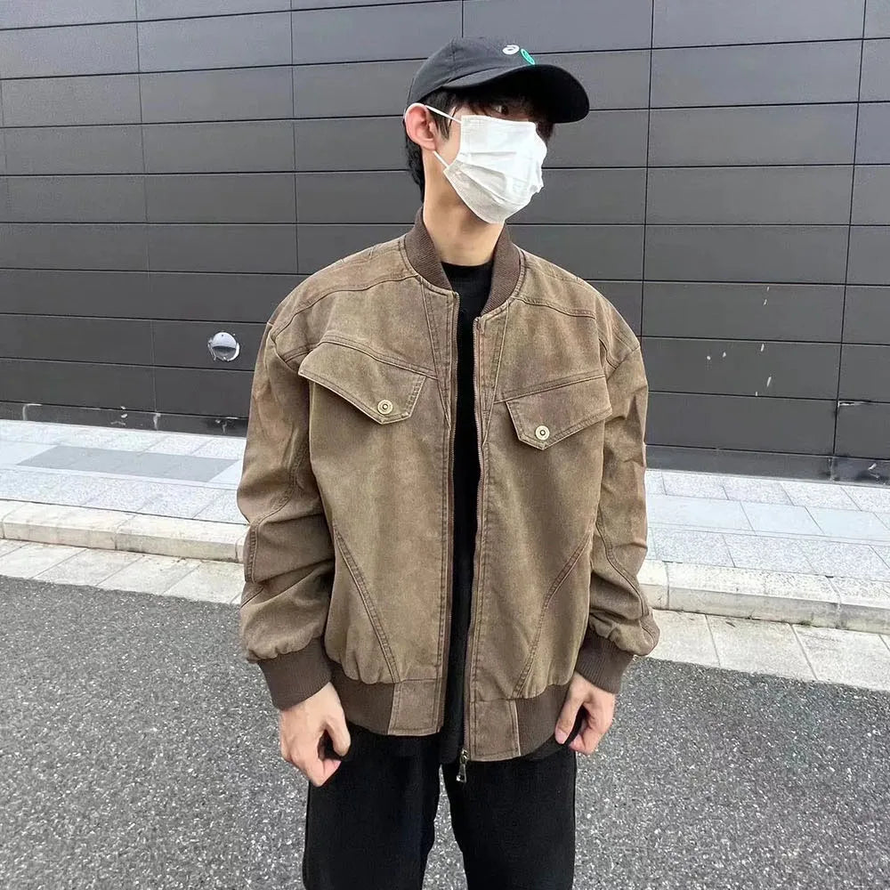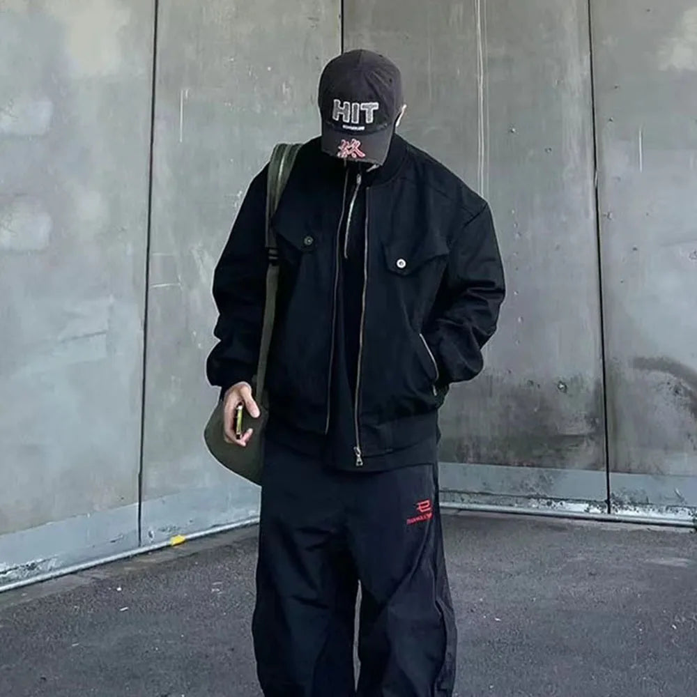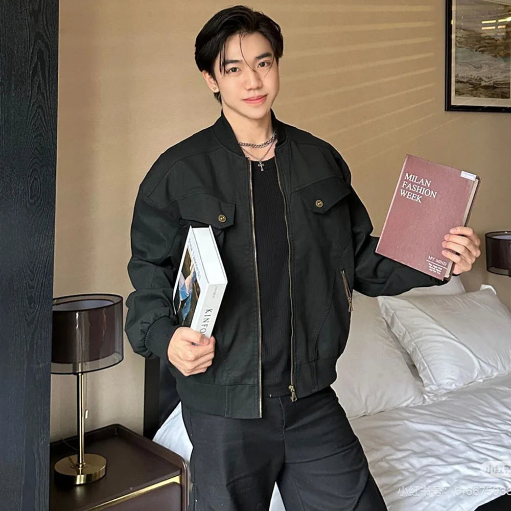 WIAOFELLAS - Streetwear Cleanfit Stand Windbreaker Corduroy Jacket for Men Front Pockets Solid Casual Loose Outwear Coat Oversized