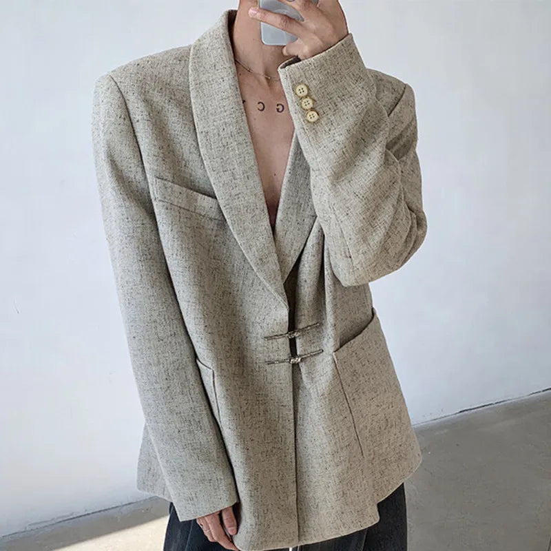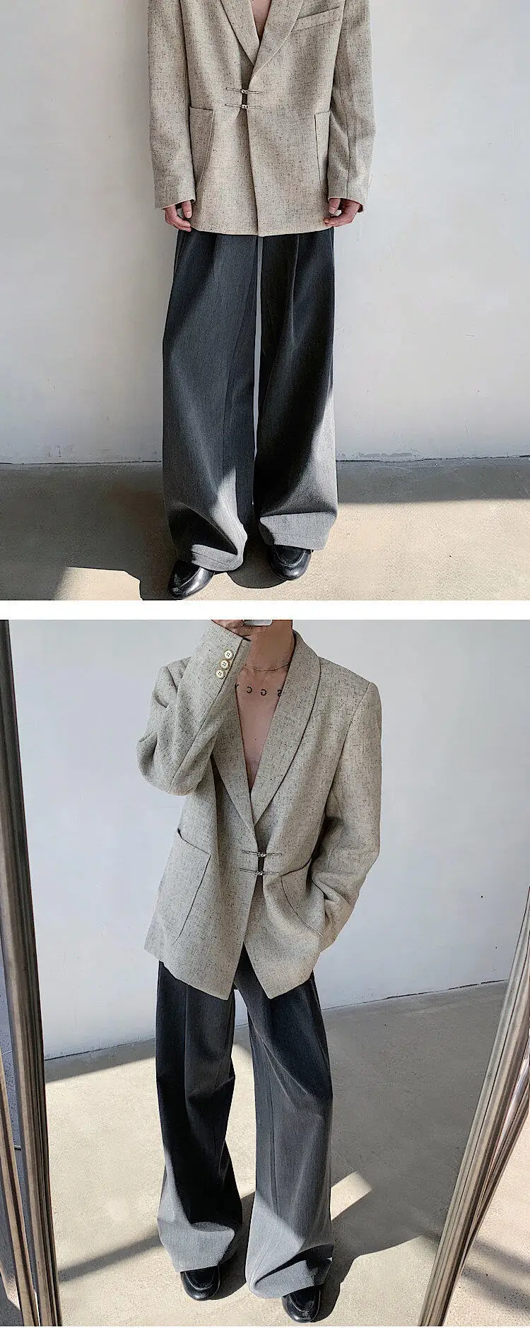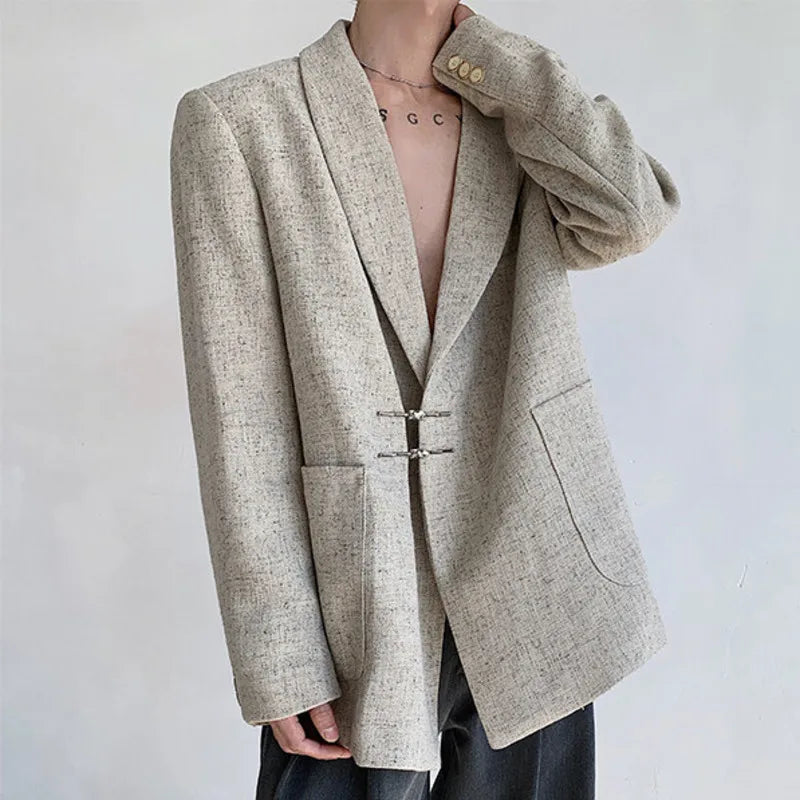 WIAOFELLAS - Trendy Men's Shoulder Pads Pockets Metal Plate Design Loose Coats Fashion Lapel Long Sleeves Casual Jackets Male