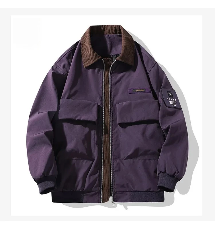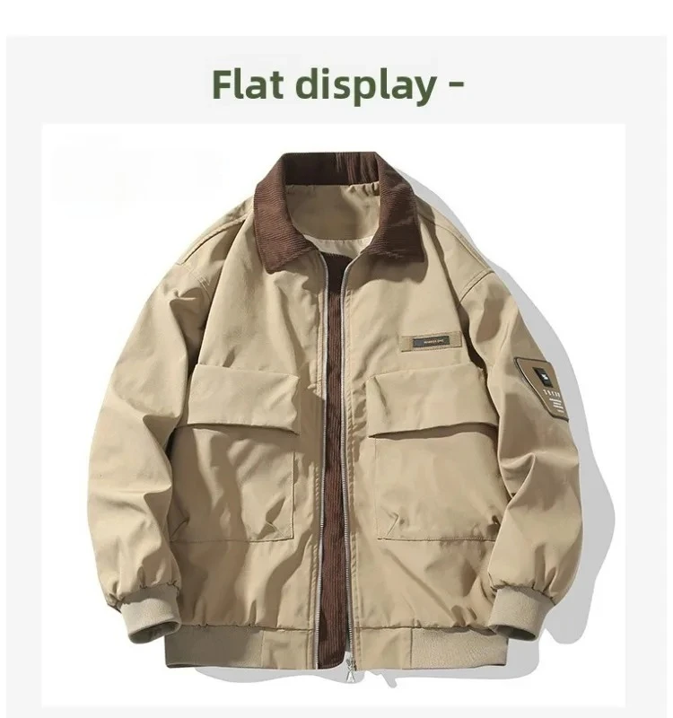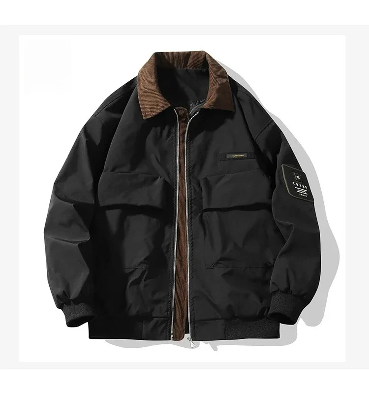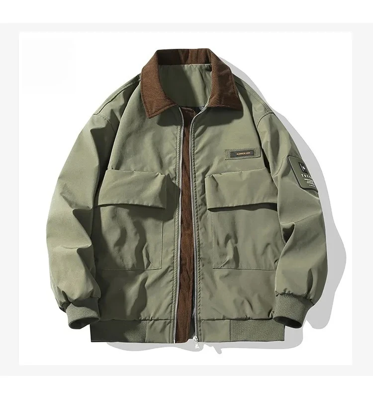 WIAOFELLAS - Vintage Cargo Jacket Men American Casual Loose Baseball Jersey Coat Multi Pockets Loose Streetwear Spring Autumn Couple Tops