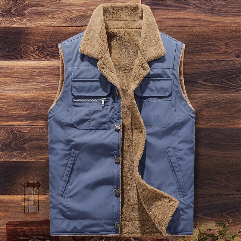 WIAOFELLAS  -  Winter Men Fleece Warm Vest  Autumn Men Soft Warm Casual Thick Waistcoat Male New Stand-Up Collar Sleeveless Jacket
