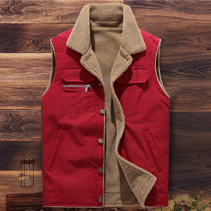 WIAOFELLAS - Winter Men Fleece Warm Vest Autumn Men Soft Warm Casual Thick Waistcoat Male New Stand-Up Collar Sleeveless Jacket