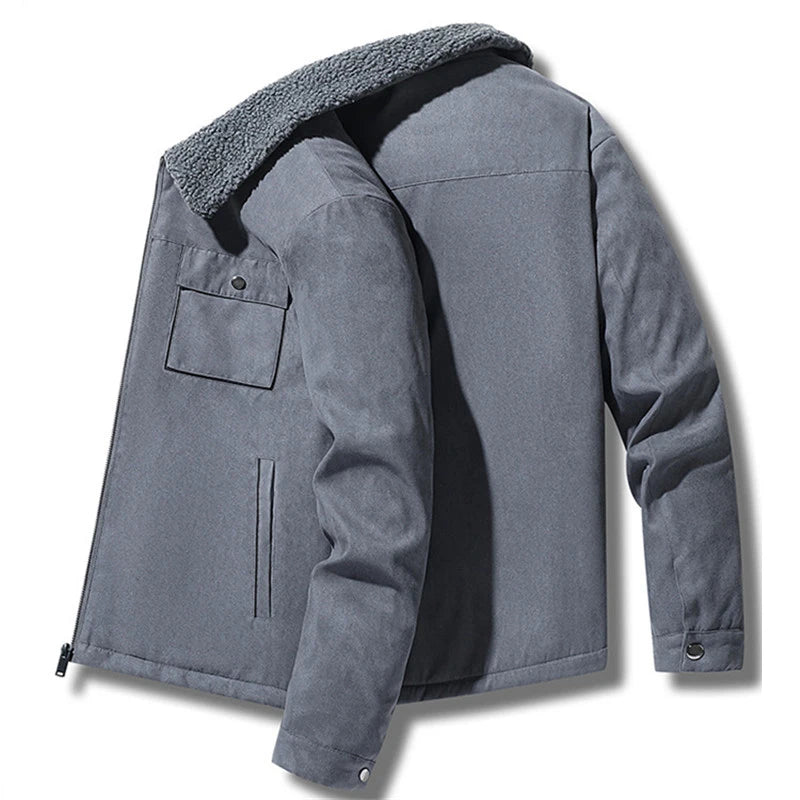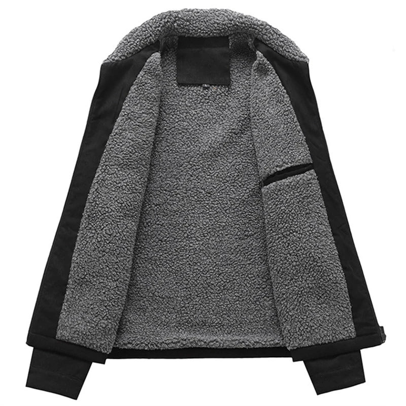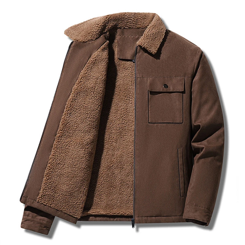 WIAOFELLAS - Winter Men's Jackets Suede Warm Fleece Thick Casual Coat Turn Down Collar Windbreaker Zipper Cargo Jacket Coats Men Solid Parkas