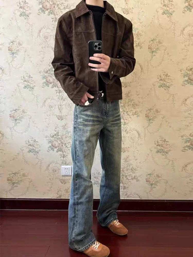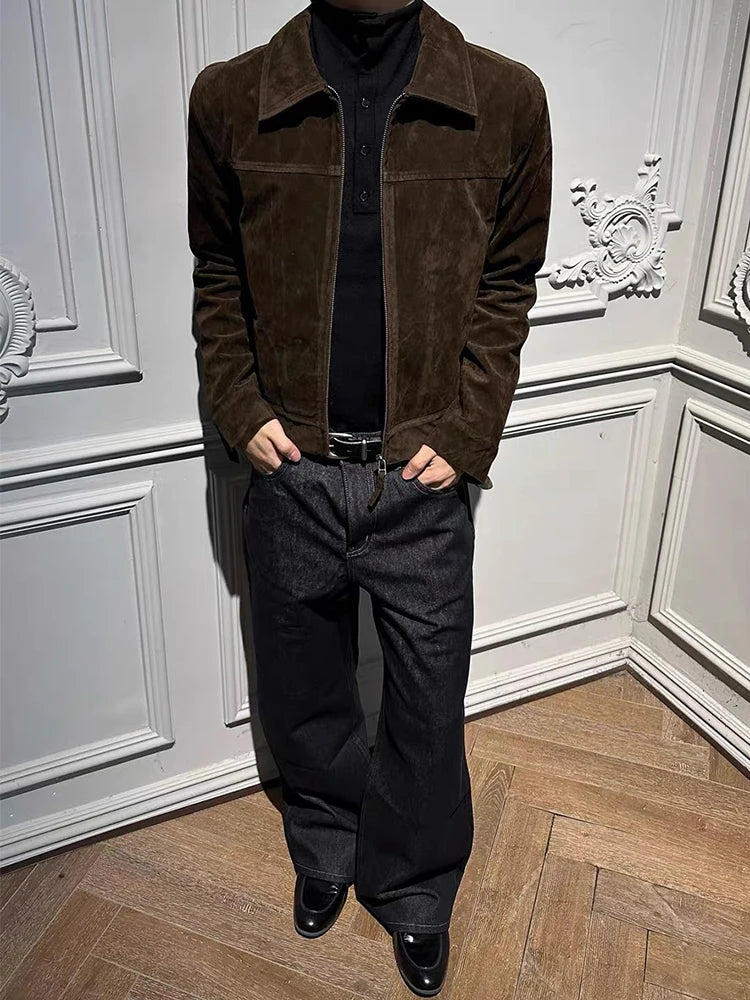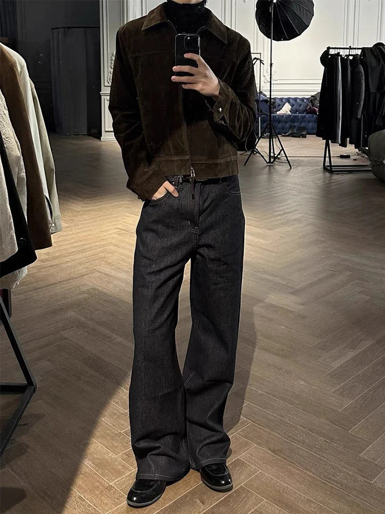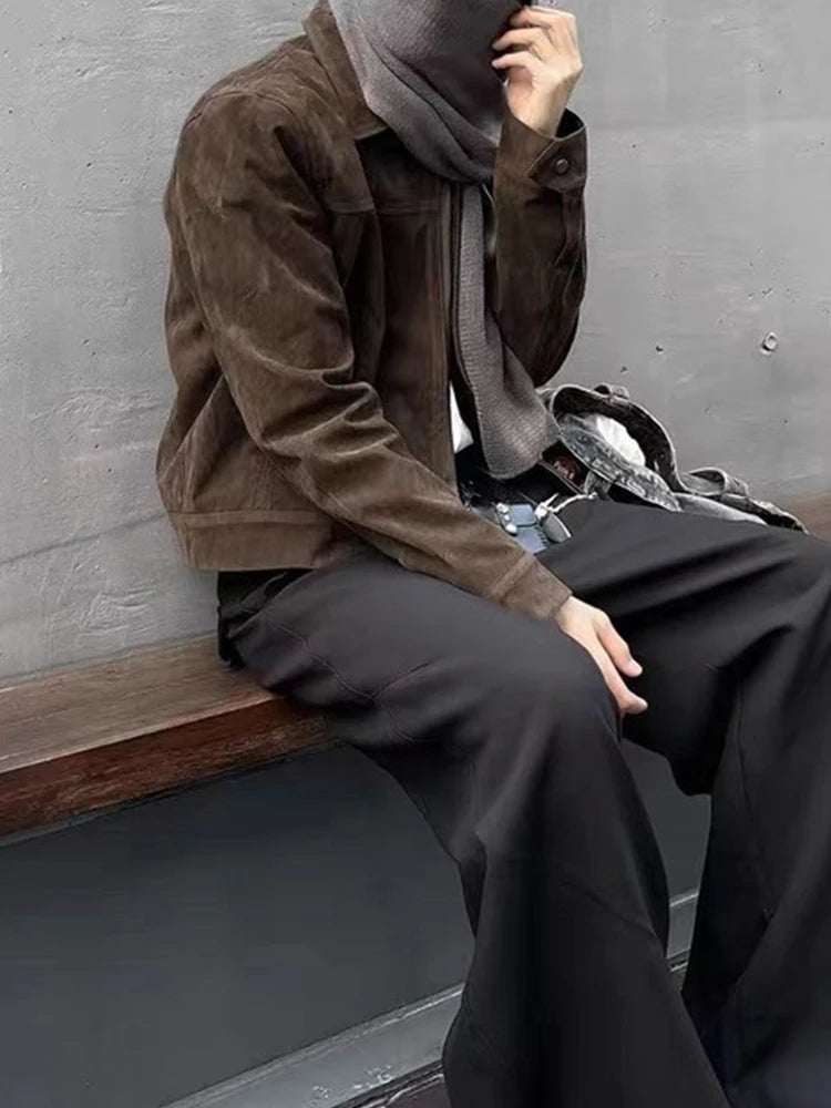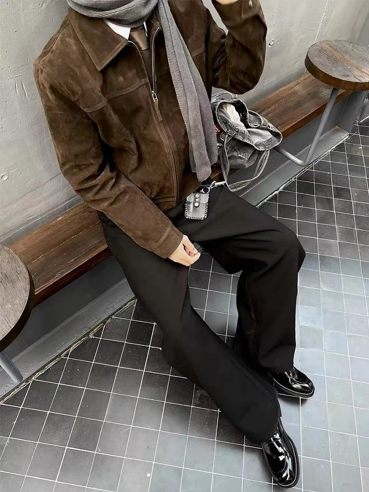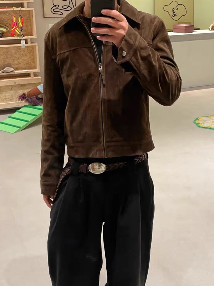 WIAOFELLAS - Y2K Men's Jacket Streetwear Fashion Slim Fit Long Sleeve Zipper Lapel Jackets For Mens Autumn Winter Outdoor Casual Crop Coats