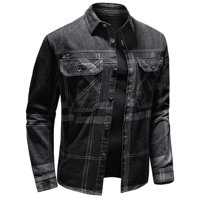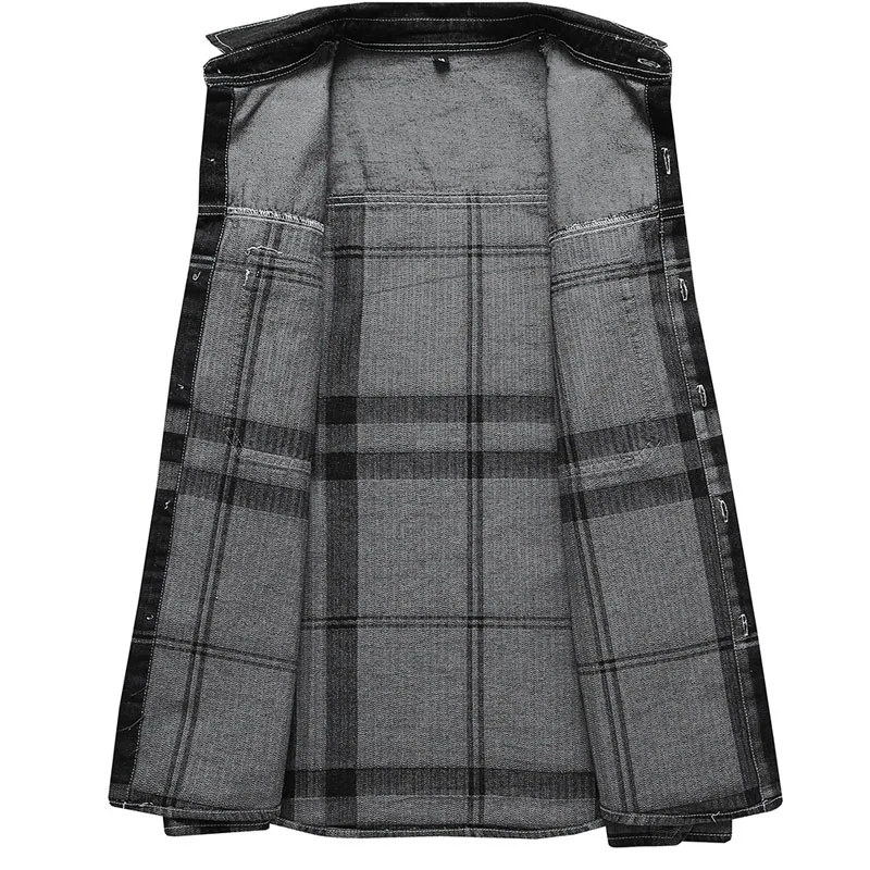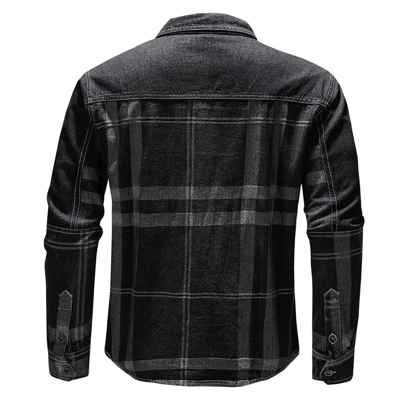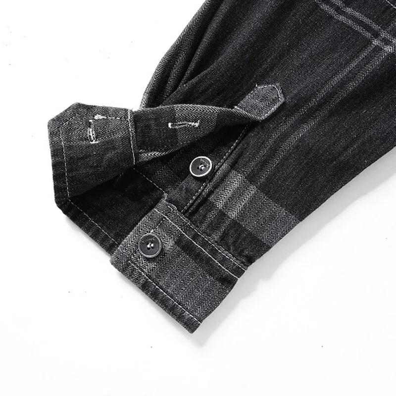 Wiaofellas - New Autumn Denim Shirt Men Long Sleeve Quality Cowboy Shirts Men's Casual Plaid Jeans Outwear Male Coat Clothing MY868
