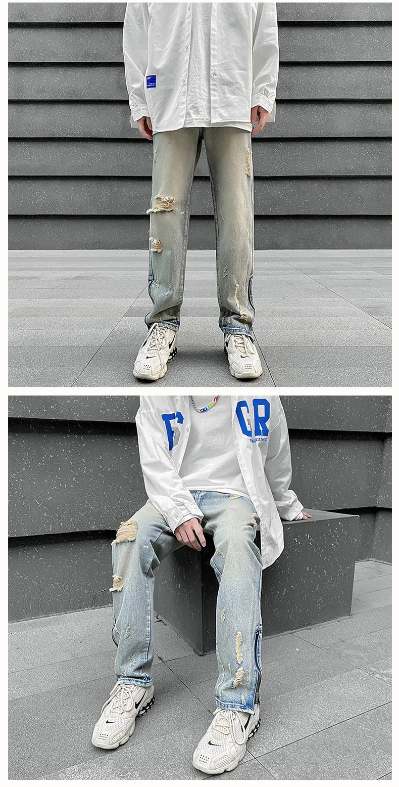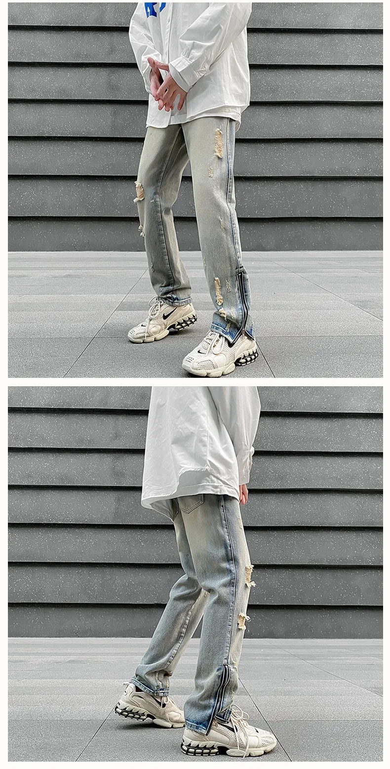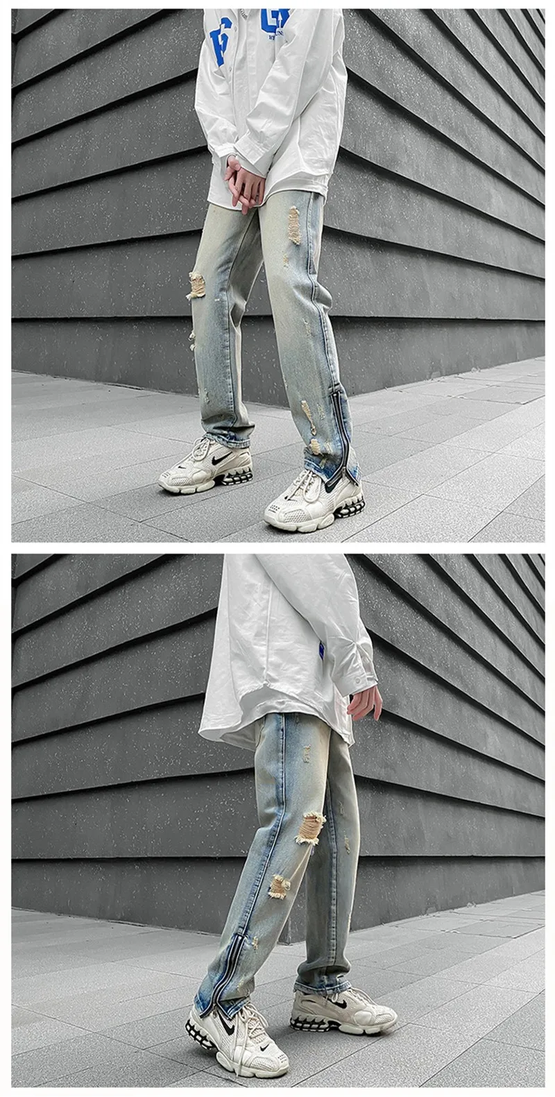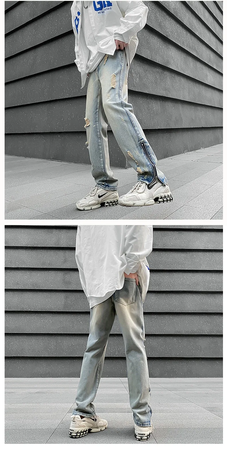 Wiaofellas High Street Hole Ripped Washed Vintage Men Hip Hop Jeans Trousers Kanye West Ankle Zipper Punk Distressed Male Denim Pants