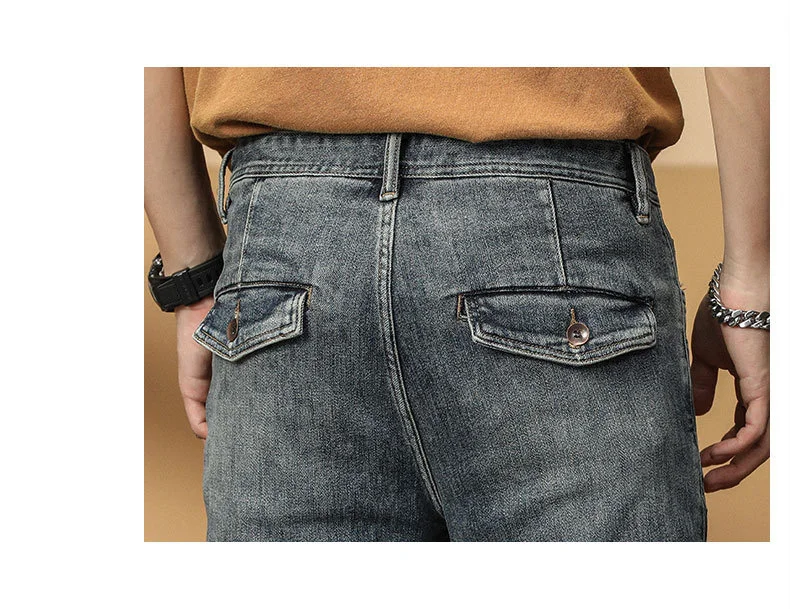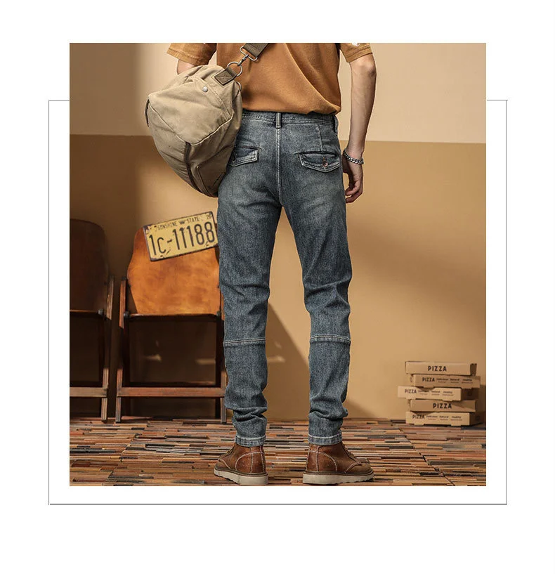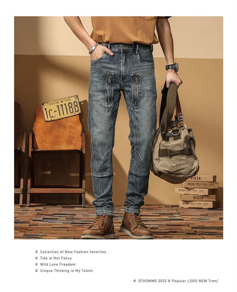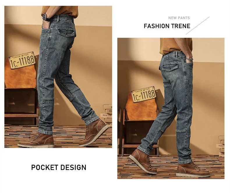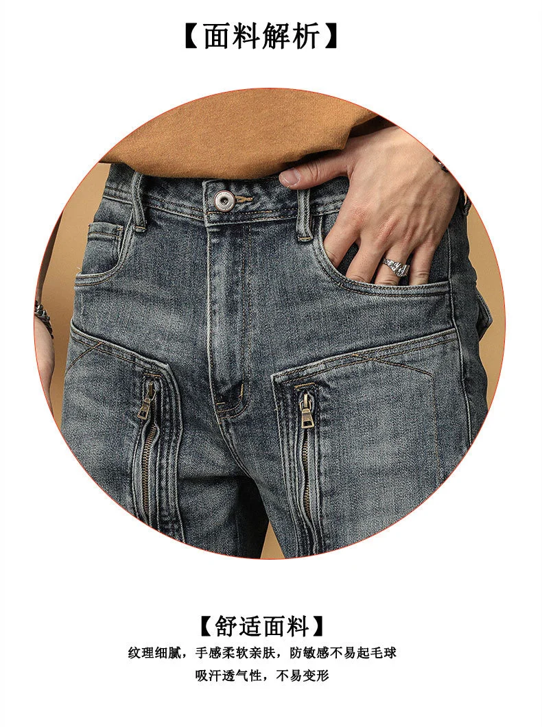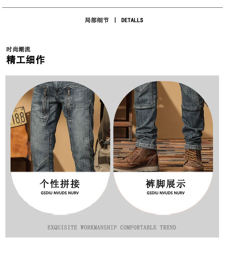 Wiaofellas Trendy Patchwork Zipper BLue Jeans Men Slim Biker Jeans Stretch Denim Slim Pants Men Clothing Casual Multi Pockets Hombres Jeans