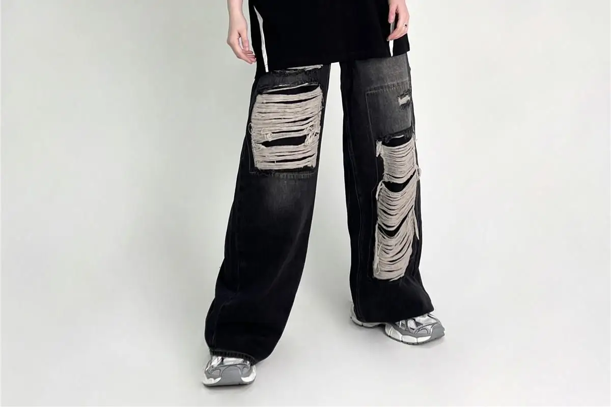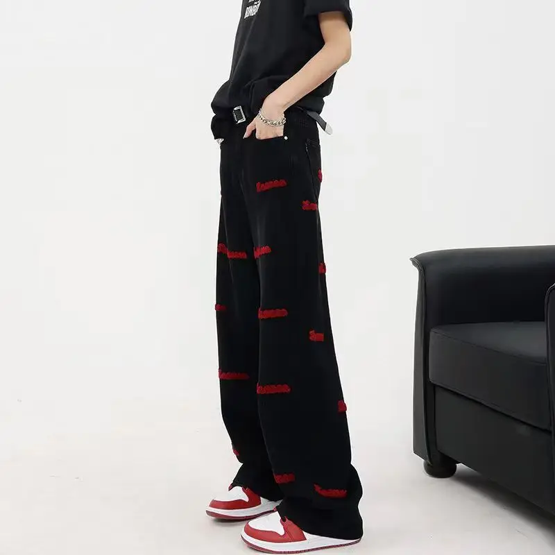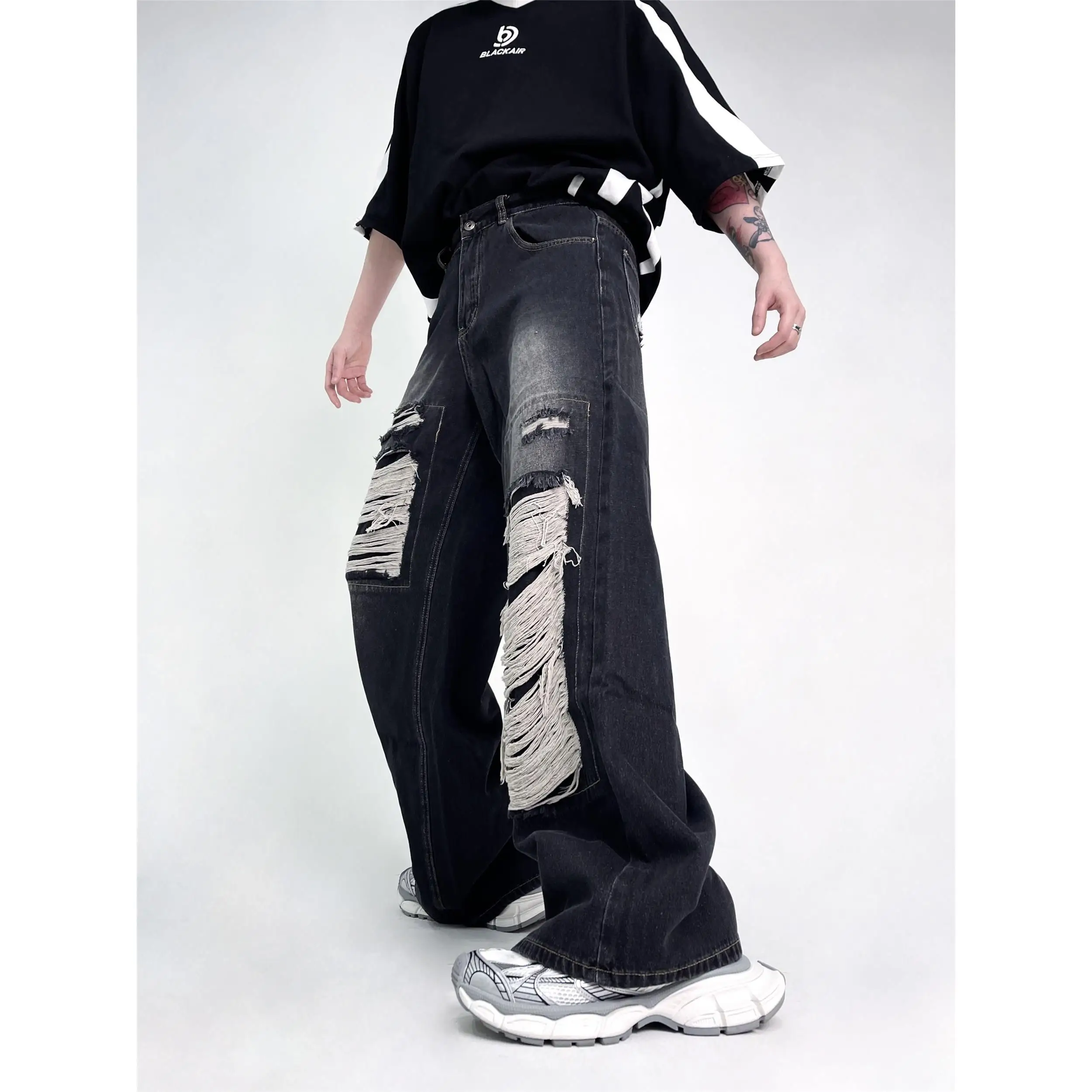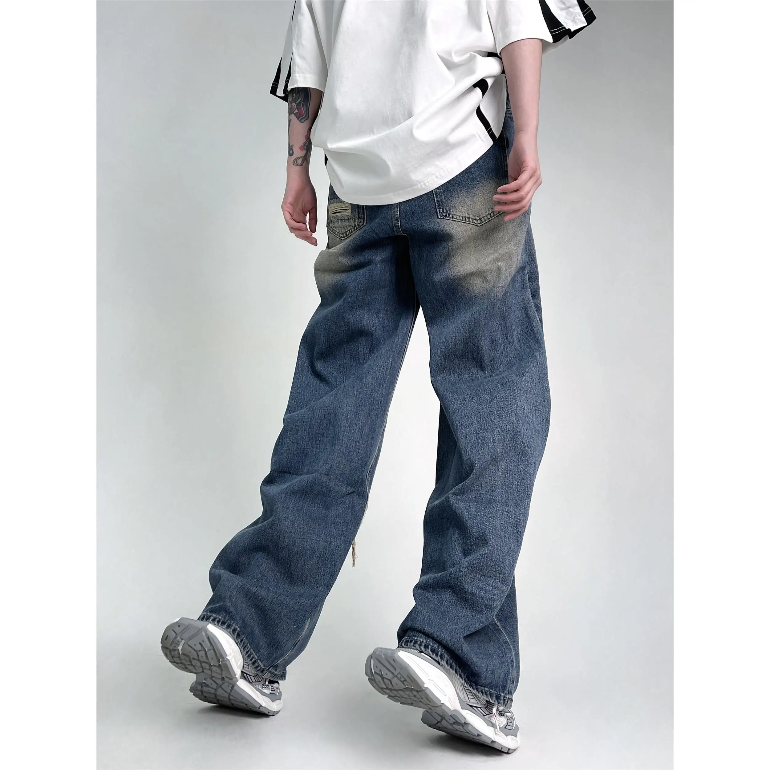 Wiaofellas Retro American design ripped men jeans loose straight leg trendy brand ins couple washed wide-leg pants jeans men