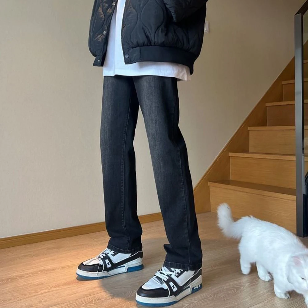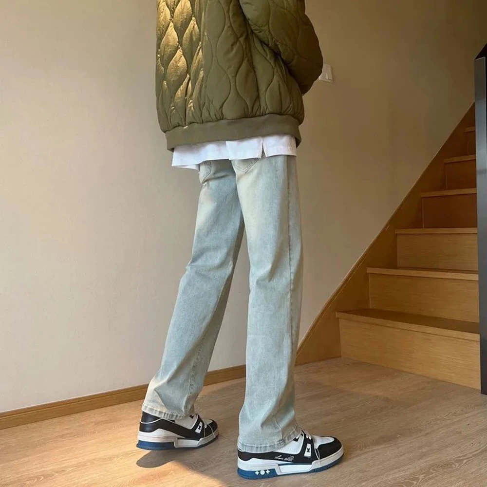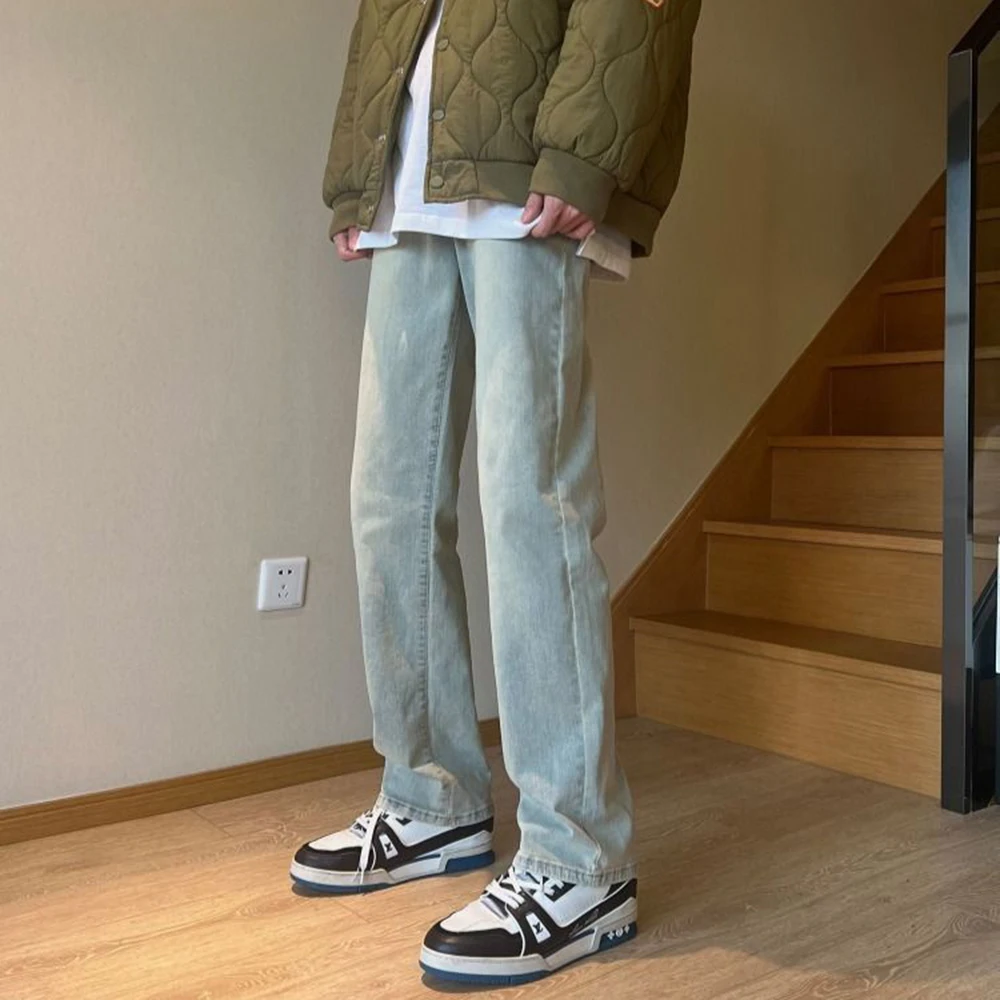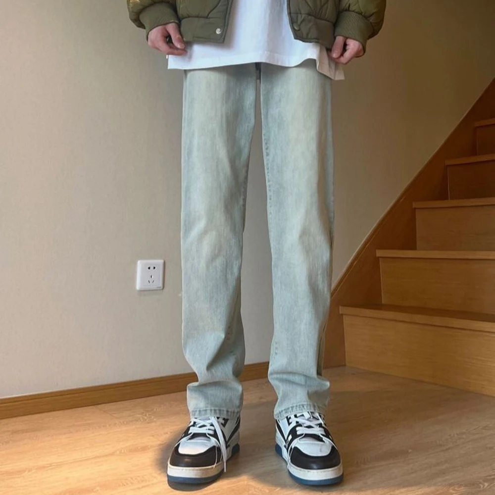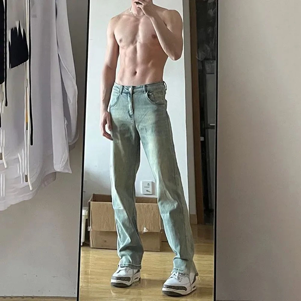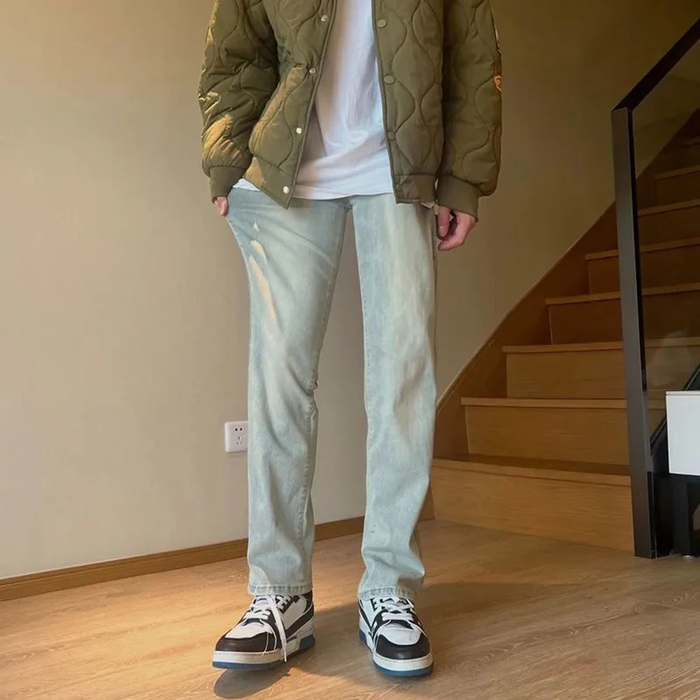 Wiaofellas Summer Thin Washed Straight Jeans Men's Slim Small Feet Old American Trousers High Street Elastic Casual Pants New Long Pants