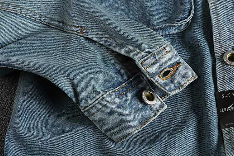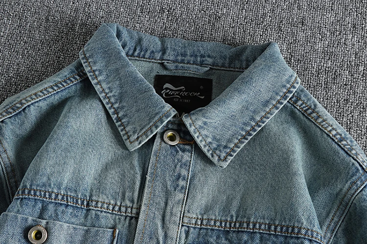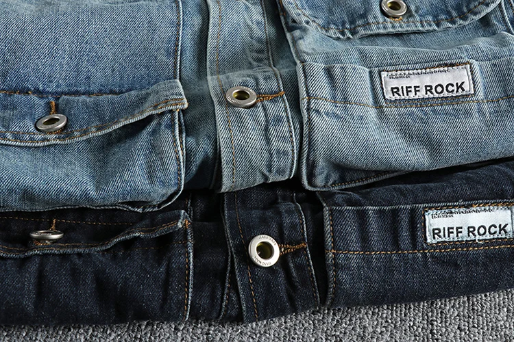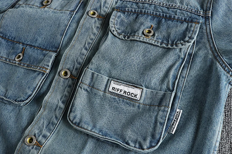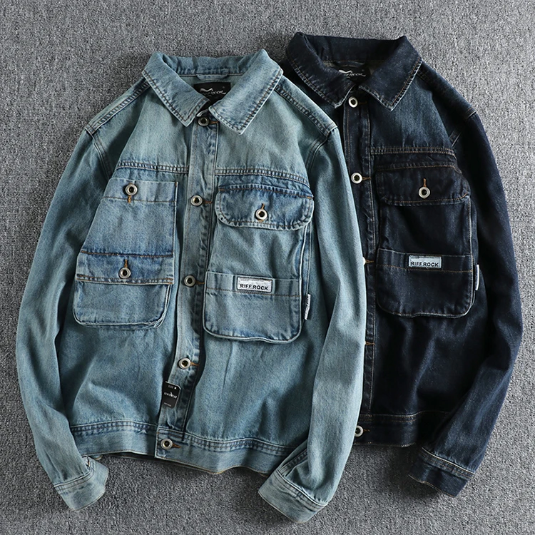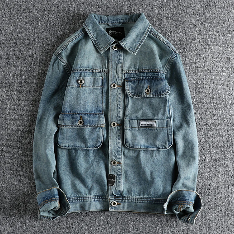 Wiaofellas - Heavy Retro Jean Jacket men's new three-dimensional garment pocket youth cardigan jacket