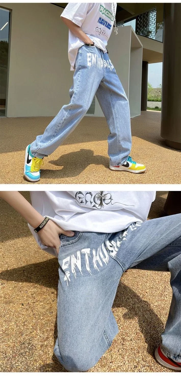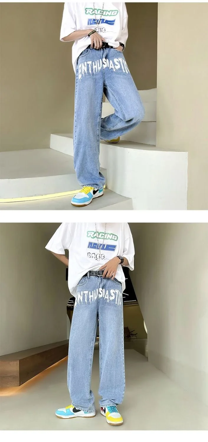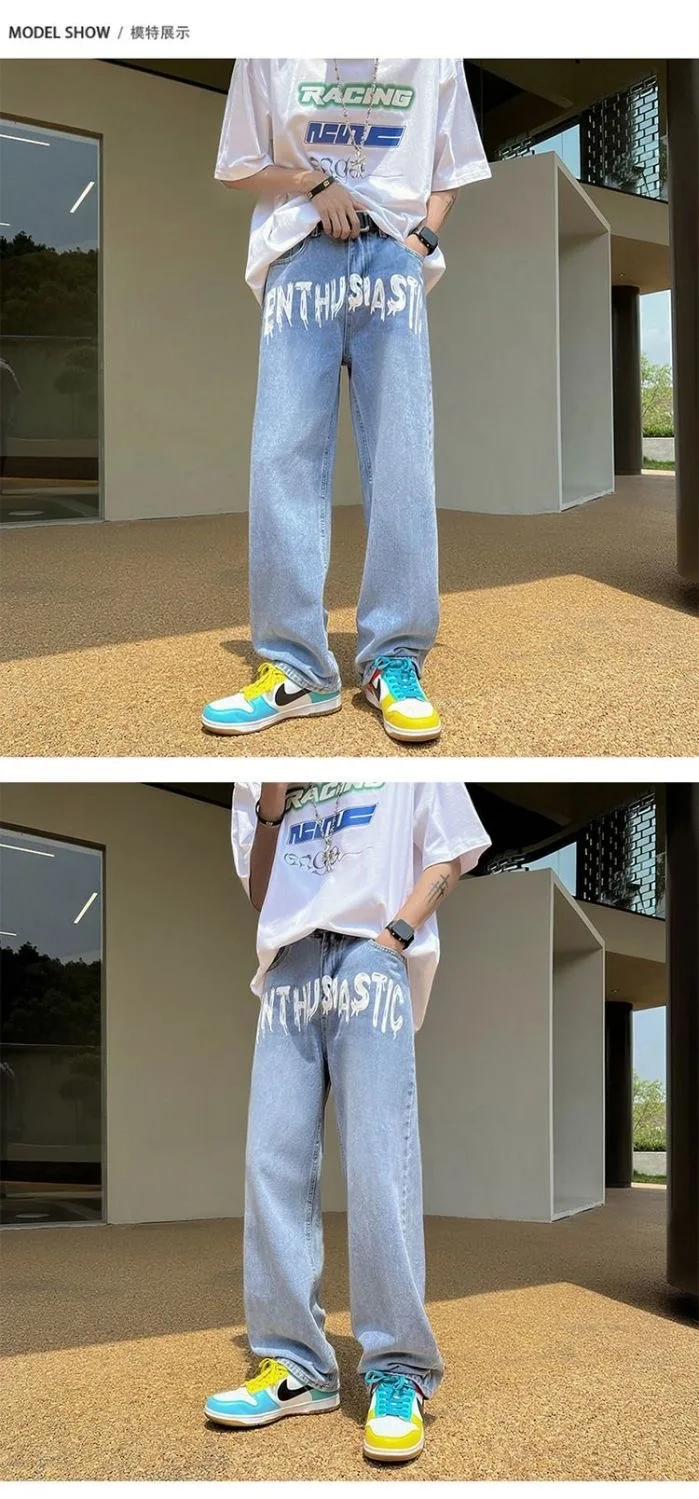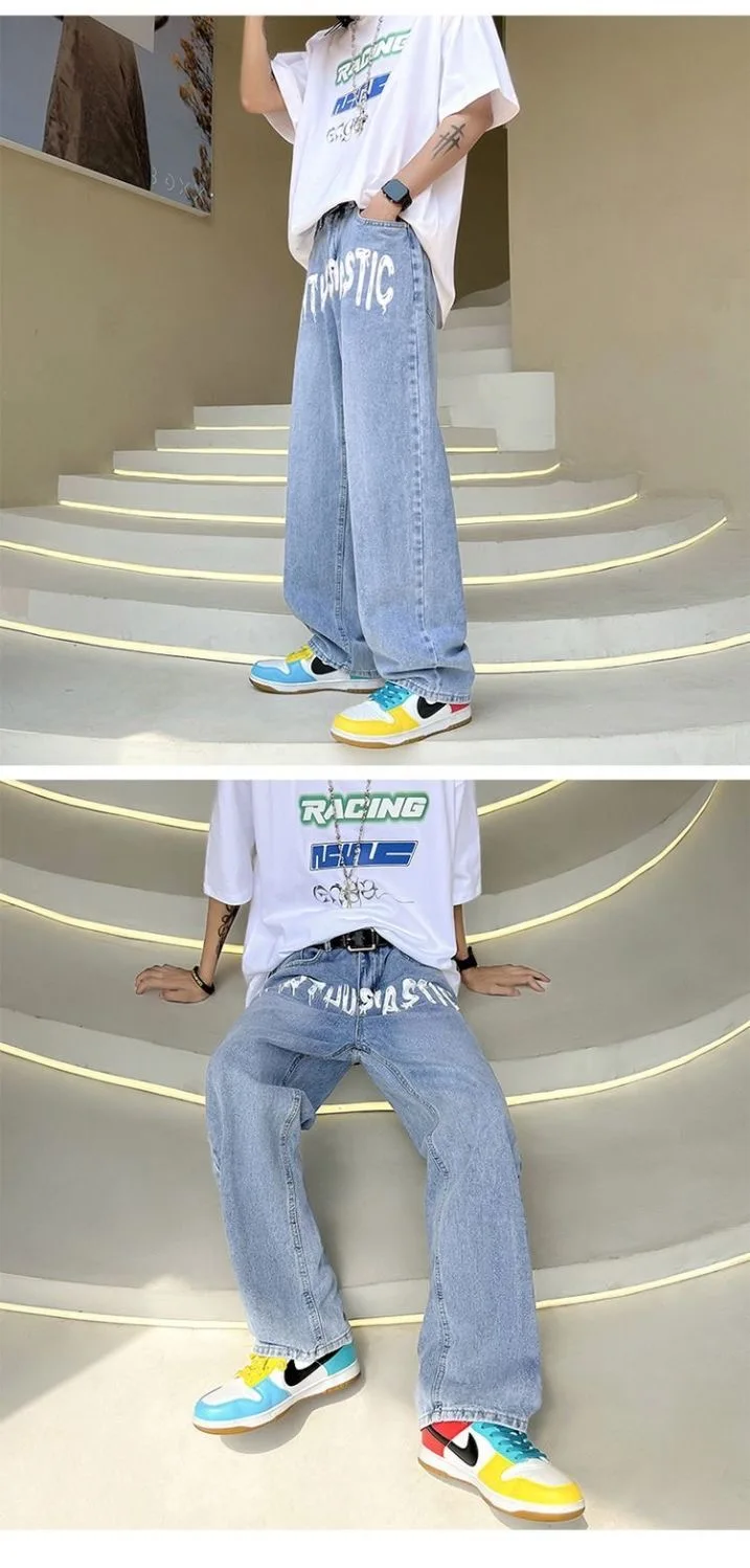 Wiaofellas - High Street Jeans Men's Jeans Loose Pants Fashion Jeans Casual Jeans