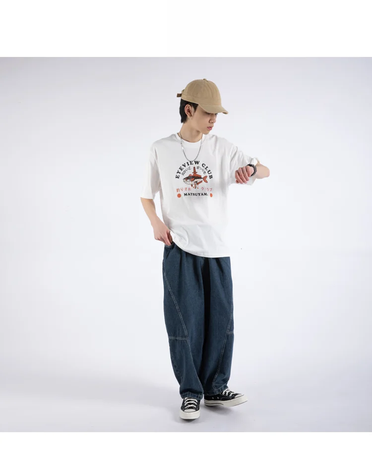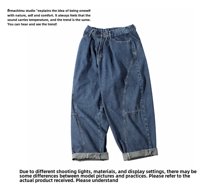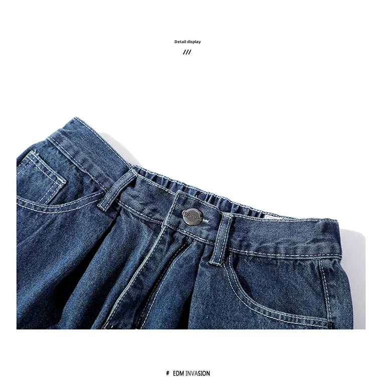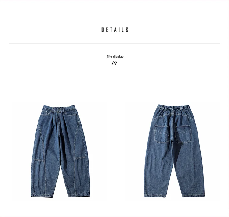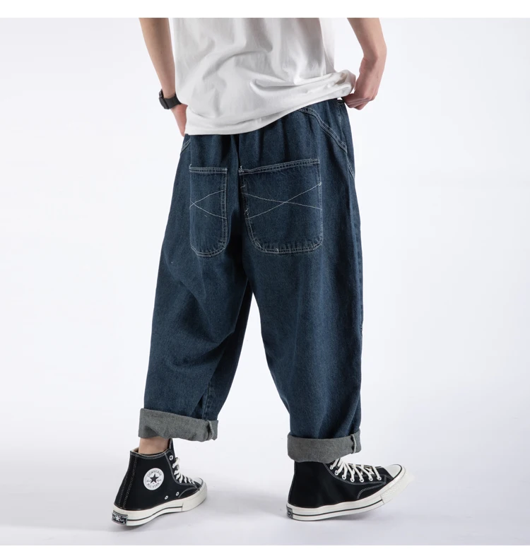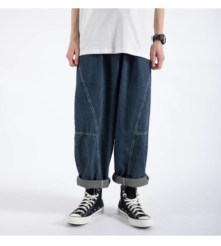 Wiaofellas - Japan fashion Retro Dark Blue Washed Jeans Men's Loose Straight Fashion Brand High Street Ins Draping Wide Leg Pants Hip-hop