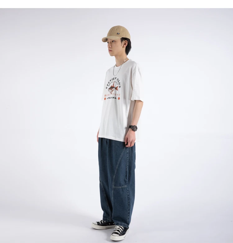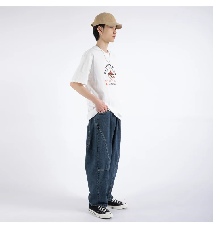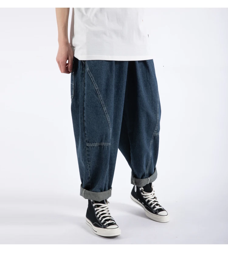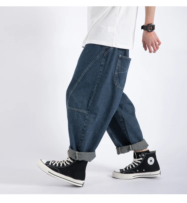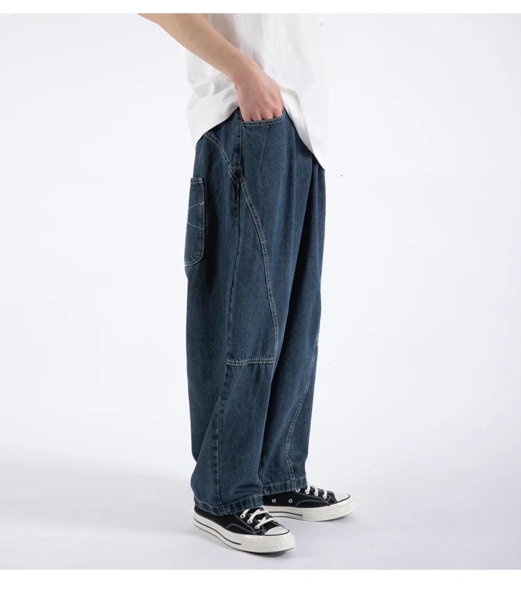 Wiaofellas  -  Japan fashion Retro Dark Blue Washed Jeans Men's Loose Straight Fashion Brand High Street Ins Draping Wide Leg Pants Hip-hop