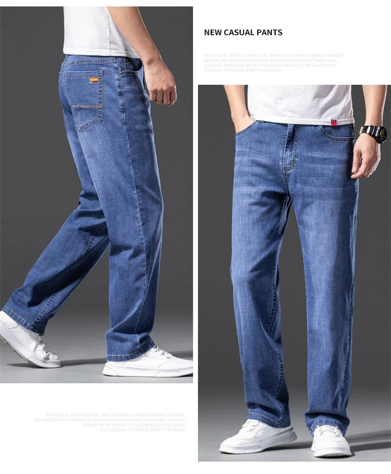Wiaofellas Jeans New Sprin Summer Cotton Men's Stretch Jeans Classic Style Fashion Casual Business Casual New Style Loose Pants 28-40