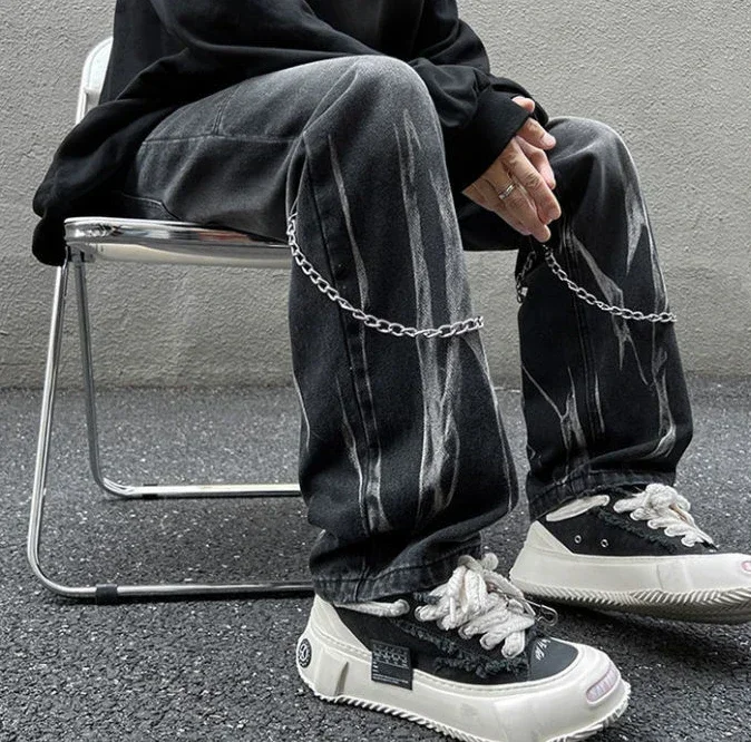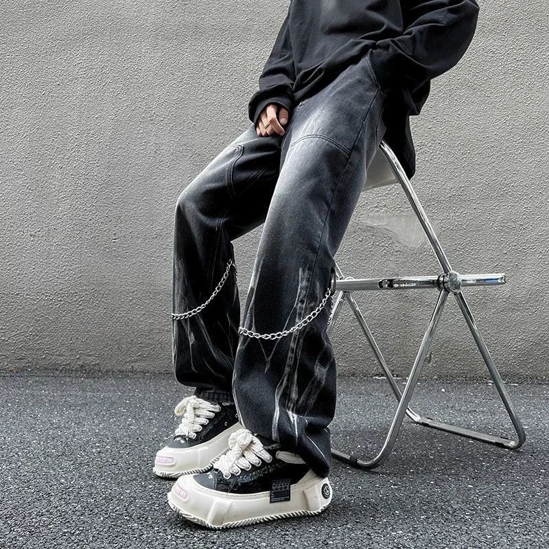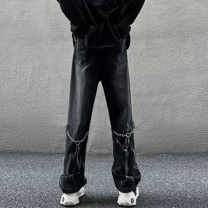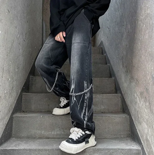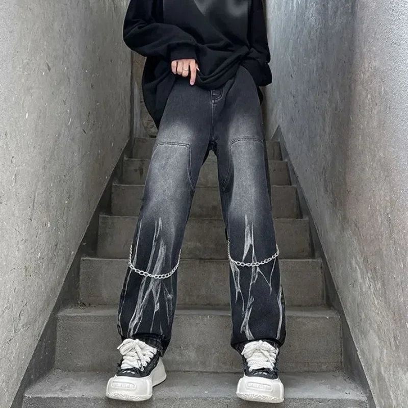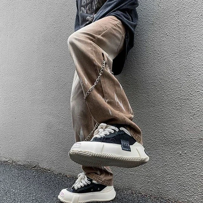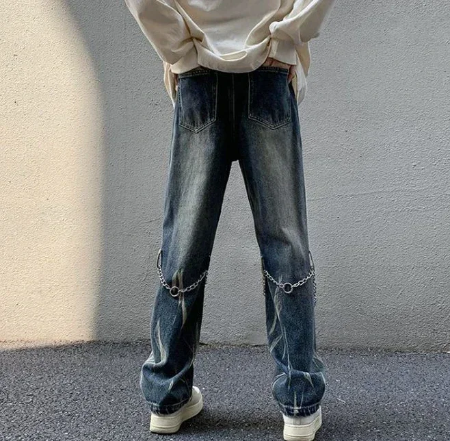 Wiaofellas - Male Cowboy Pants Jeans for Men Aesthetic Trousers Kpop Designer Streetwear Washed Loose Wide Leg Brown Korean Fashion New in Xs