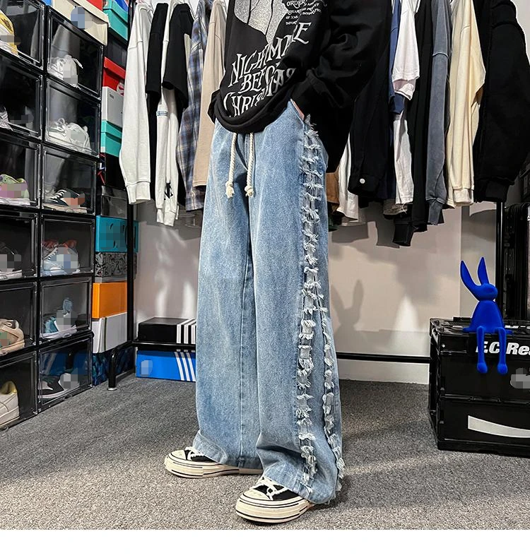 Wiaofellas - Men's Retro Washed Jeans Classic Versatile Casual Pants Casual Loose Pant