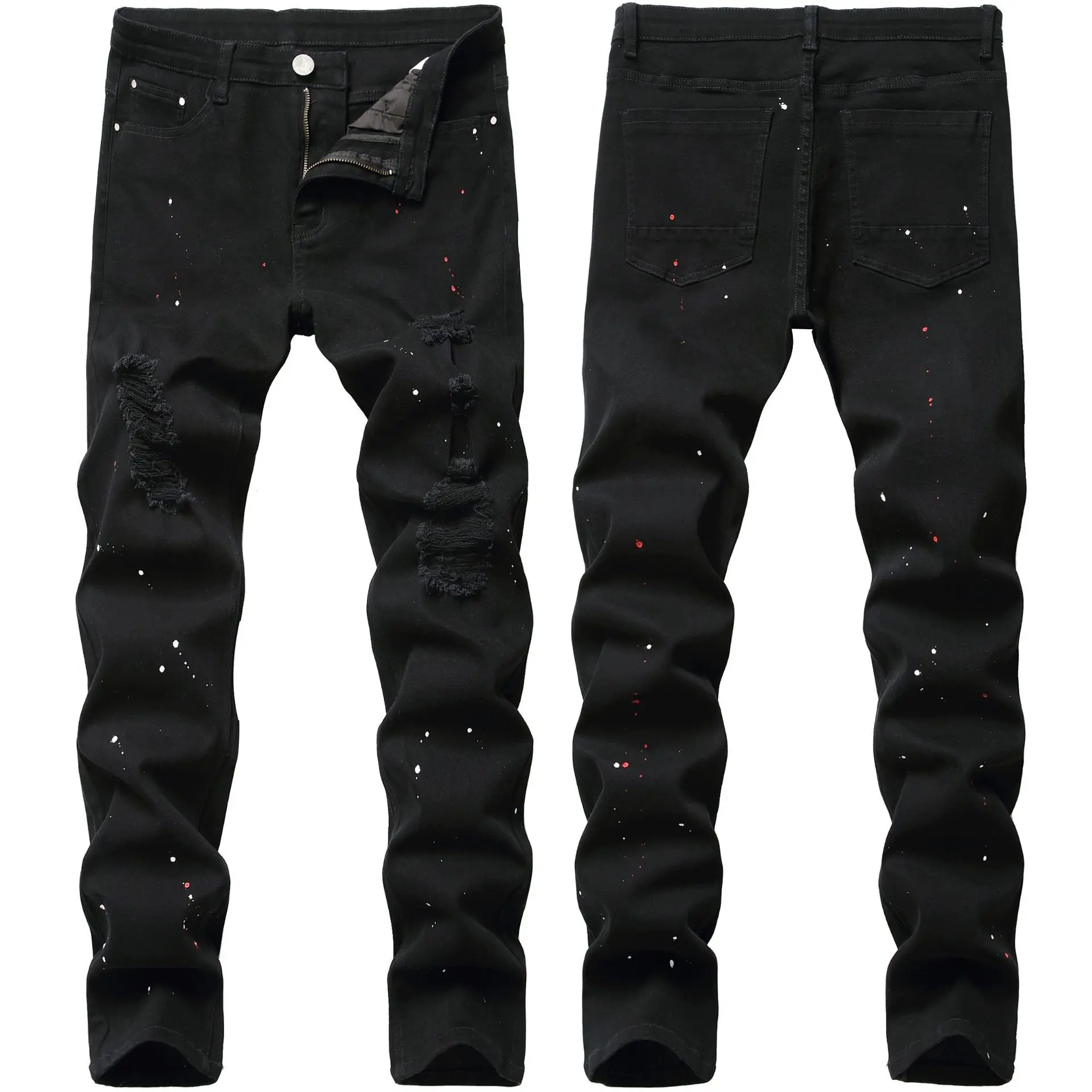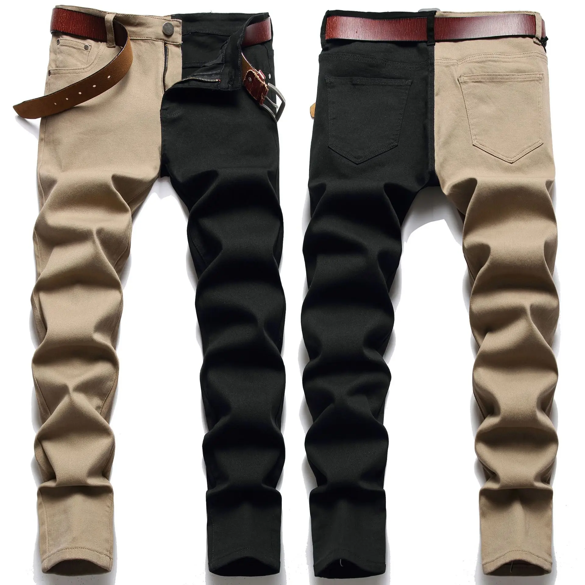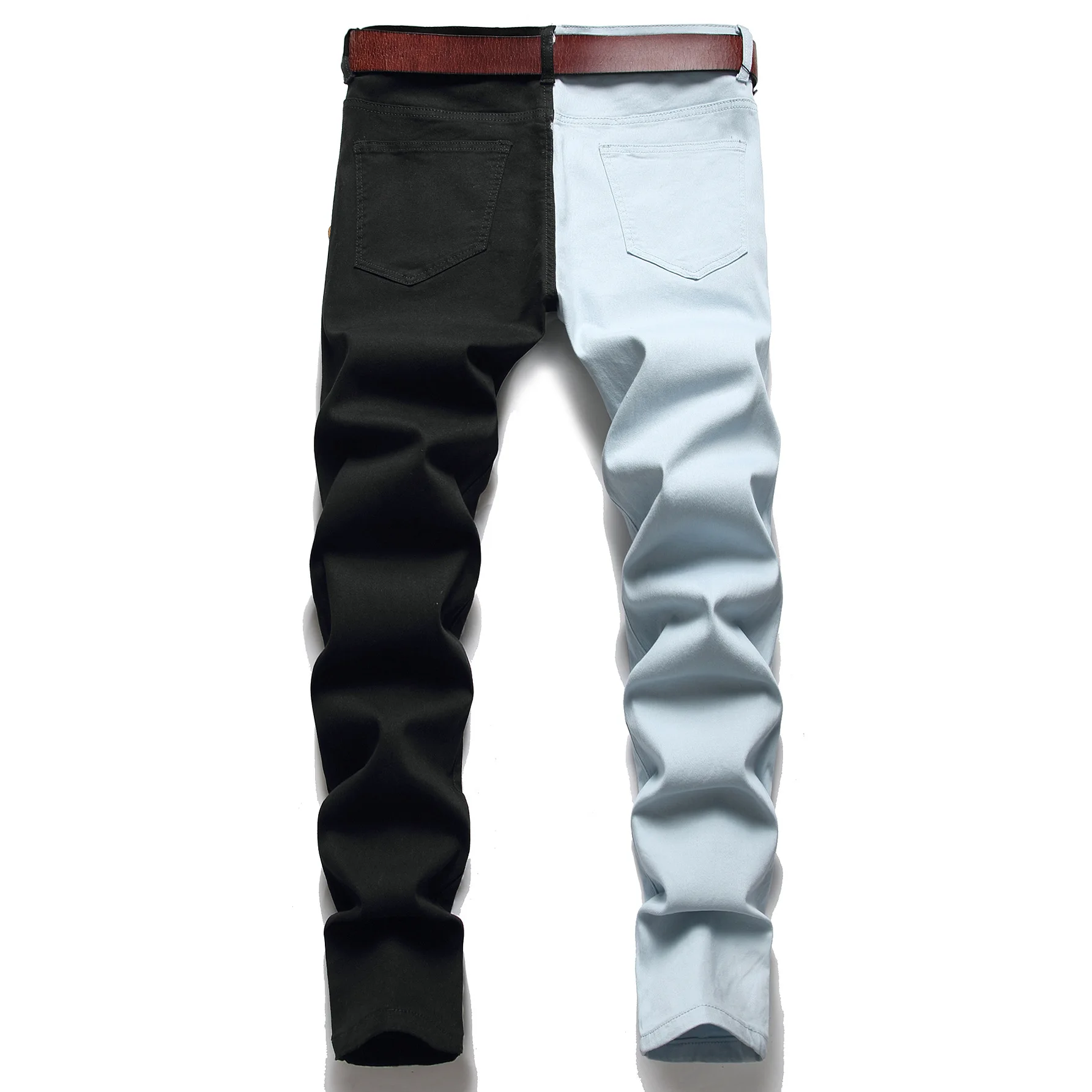 Wiaofellas Slim Slim Fit Small Foot Spliced Bi-color Jeans, European and American New Straight Leg Jeans Men's K021-1266