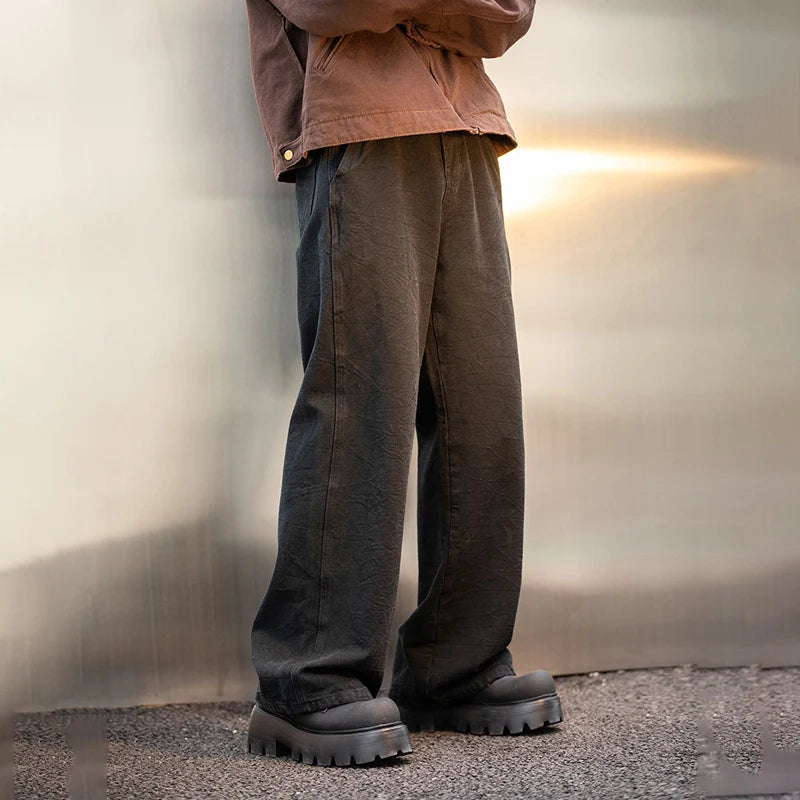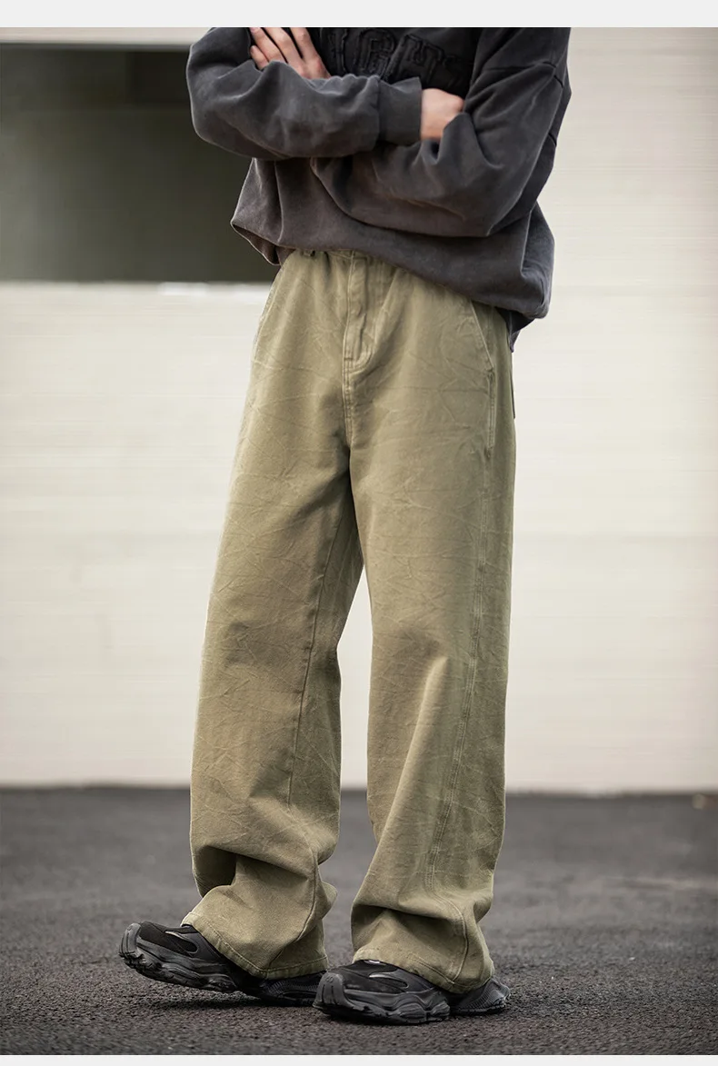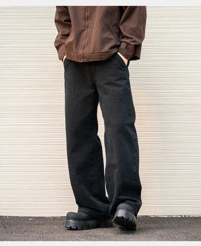 Wiaofellas - Washed Jeans Man Water Ripple Retro Summer Male Jeans Pants Baggy Micro Flared Workwear Pants Korean Streetwear