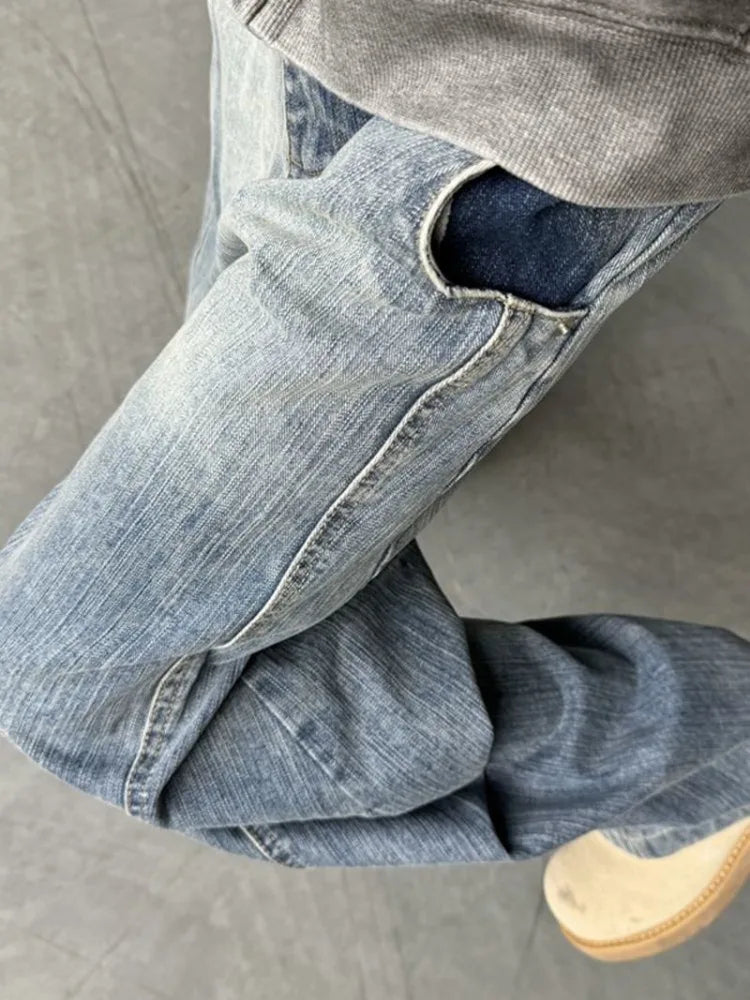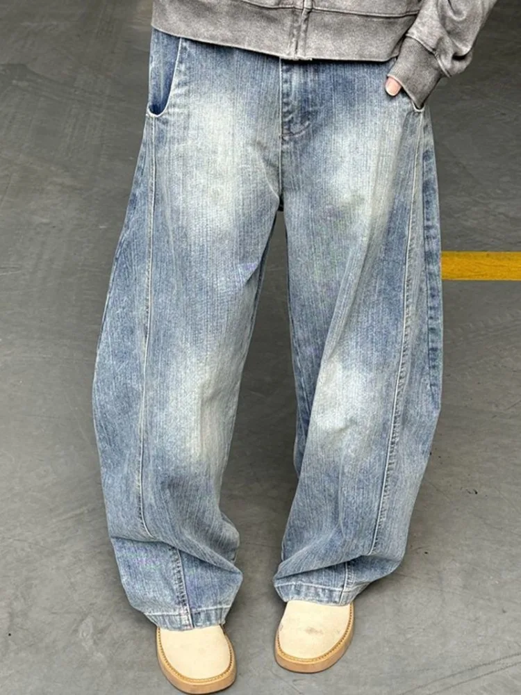 WIAOFELLAS  -  American Fashion Ripped Jeans Men Retro Trendy Floor-length Wide-leg High Street Design Reverse Wear Loose Street Style Pants