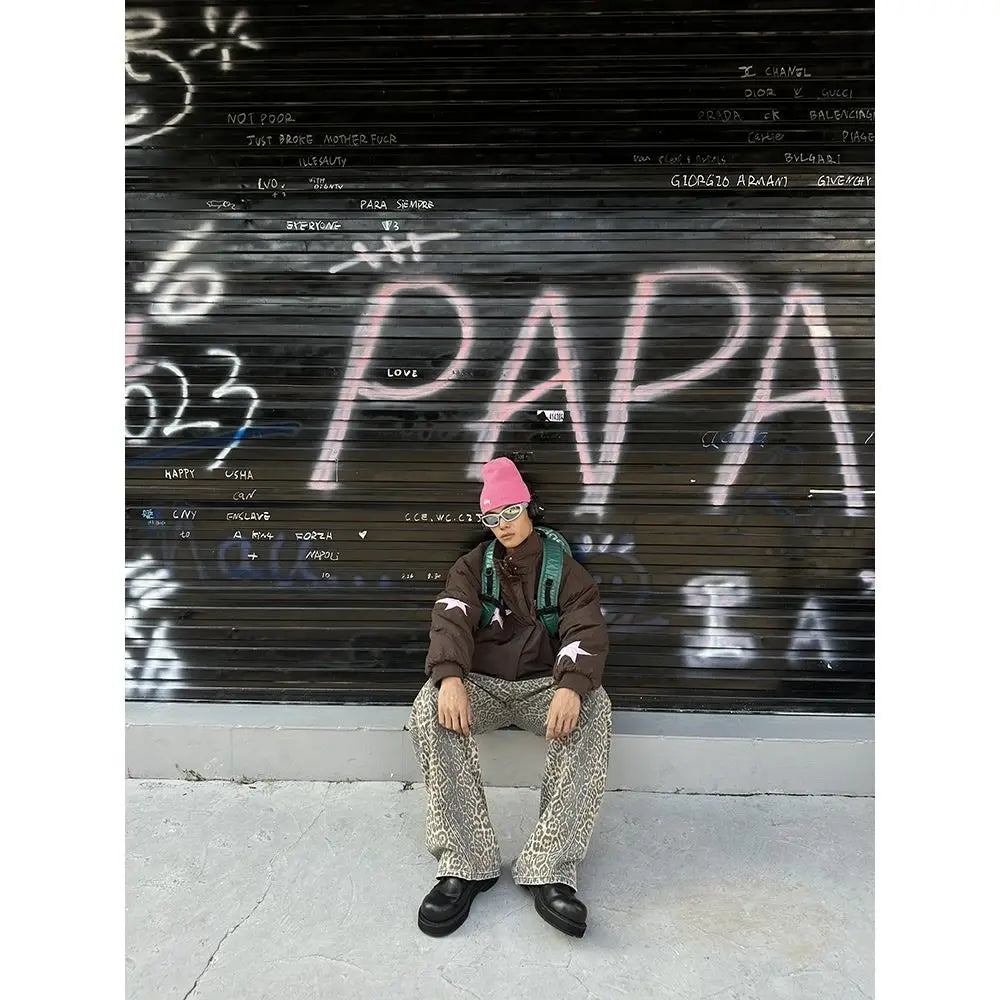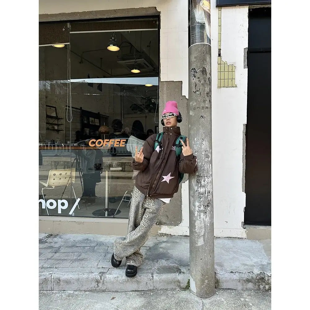 WIAOFELLAS - American retro jeans new camouflage leopard print jeans for men and women loose straight and versatile casual trousers