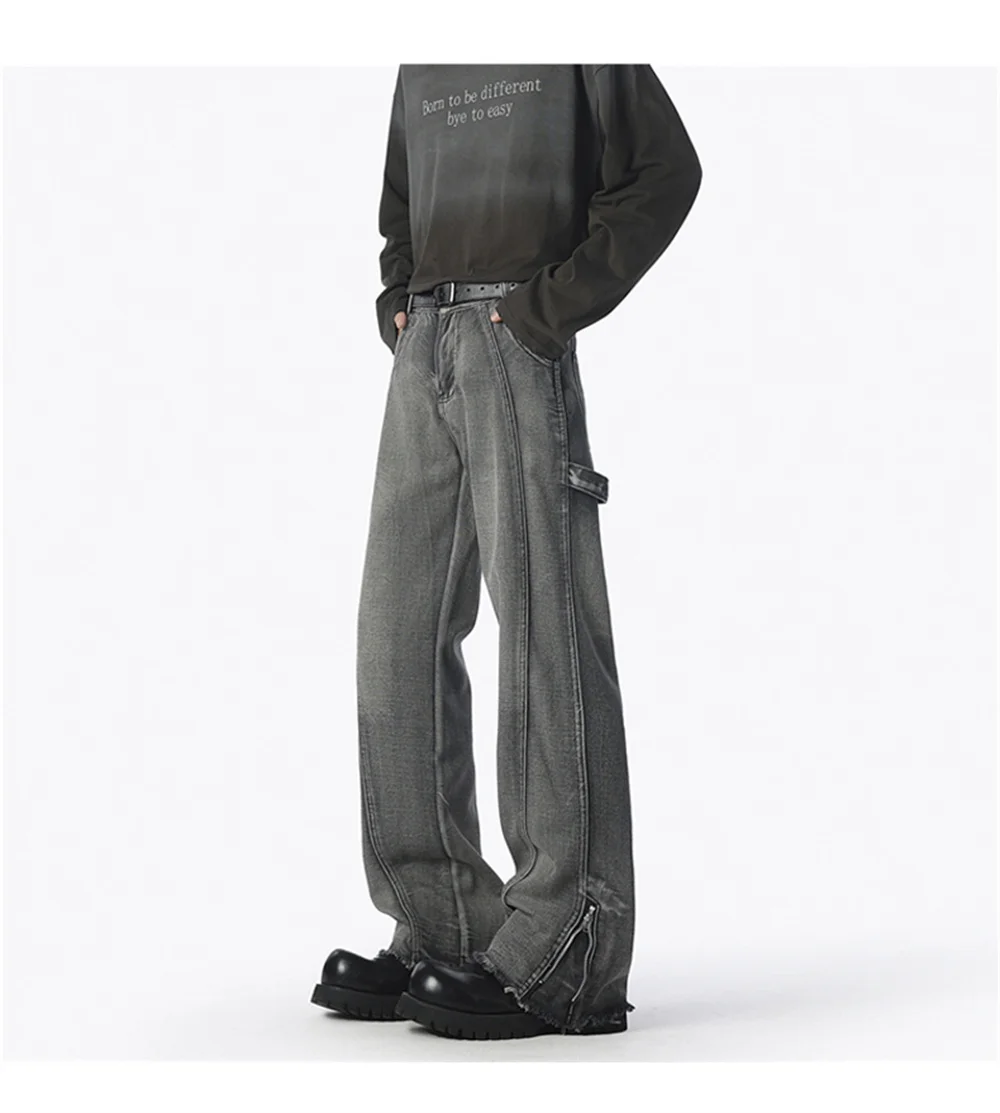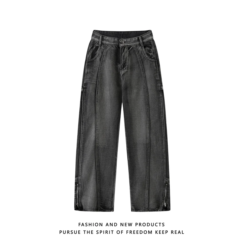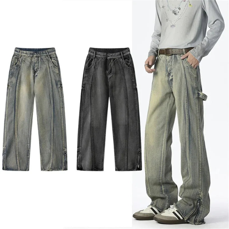 WIAOFELLAS - American Retro Wide-leg Jeans for Men New Style High Street Washed Denim Fabric Pants Youth Casual Loose Baggy Jeans Trousers