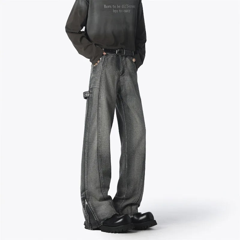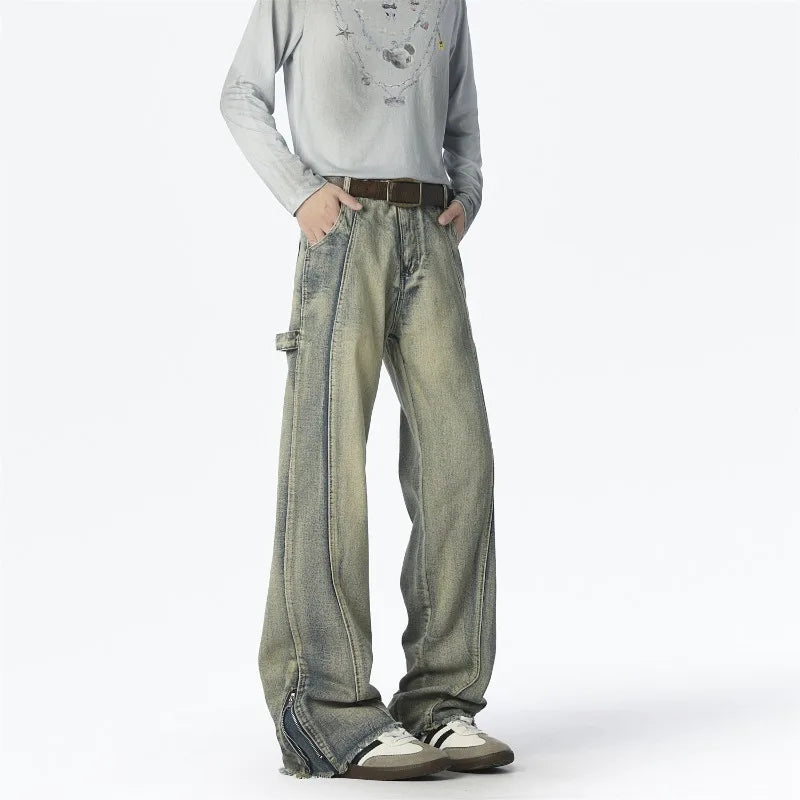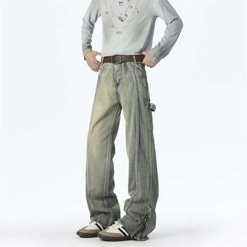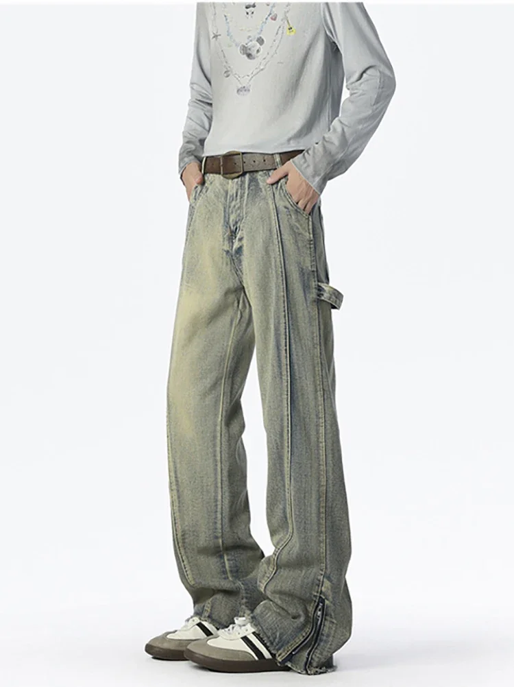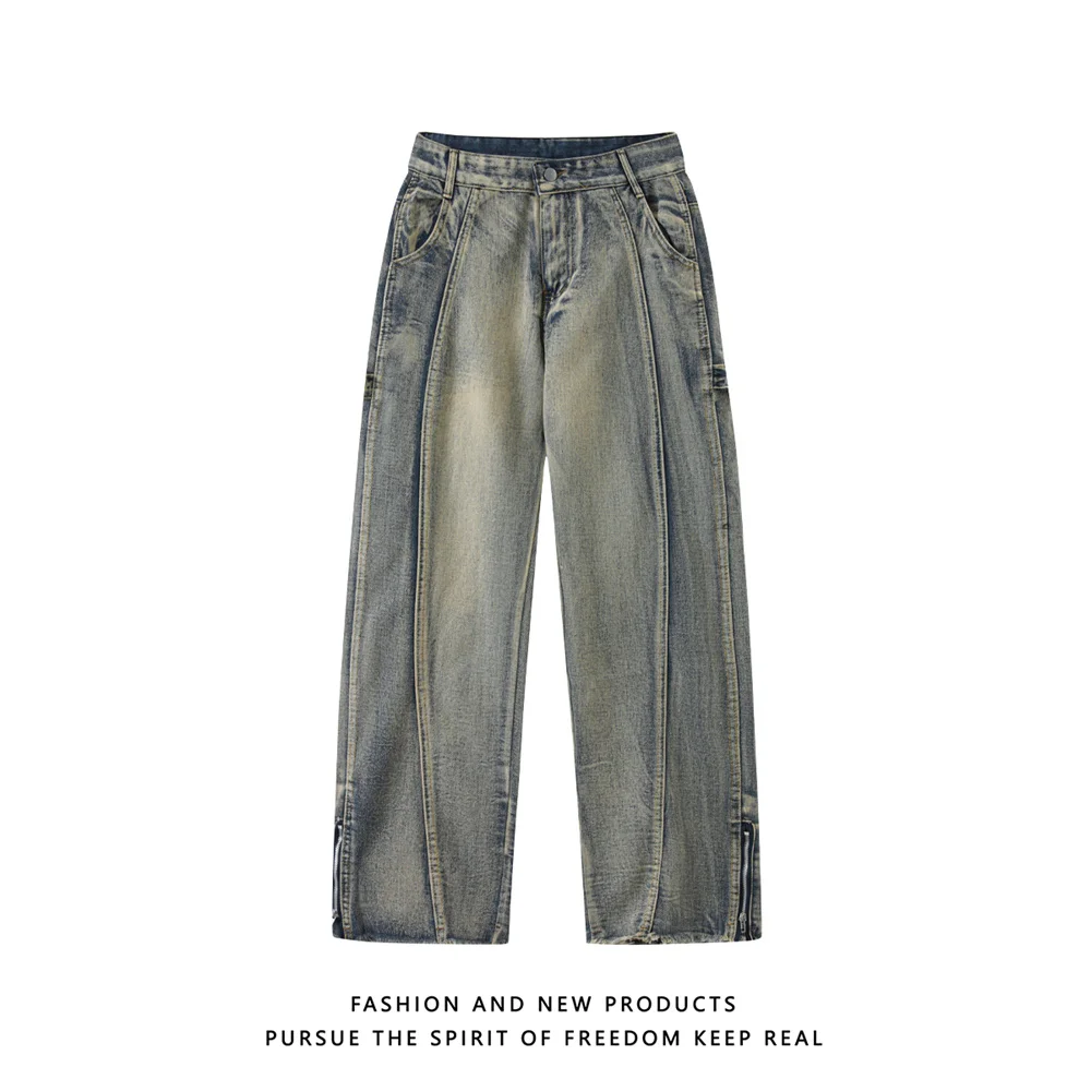 WIAOFELLAS - American Retro Wide-leg Jeans for Men New Style High Street Washed Denim Fabric Pants Youth Casual Loose Baggy Jeans Trousers