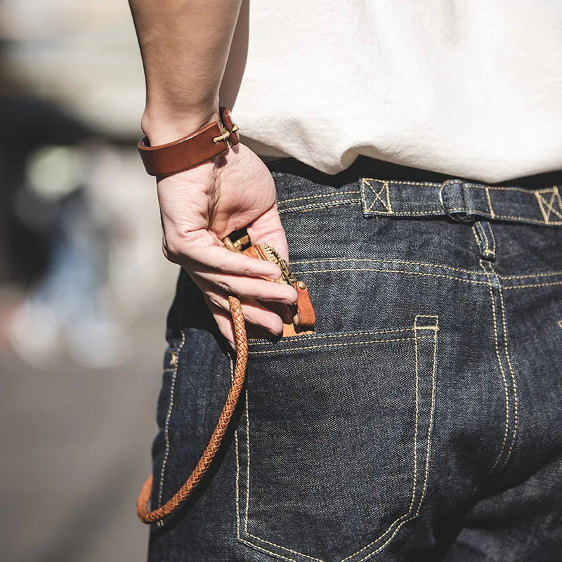 WIAOFELLAS - American Vintage Heavy weight Denim pants Men Spring Autumn Dark Straight Jeans Amekaji Trousers Back Paris Buckle Cargo Pants