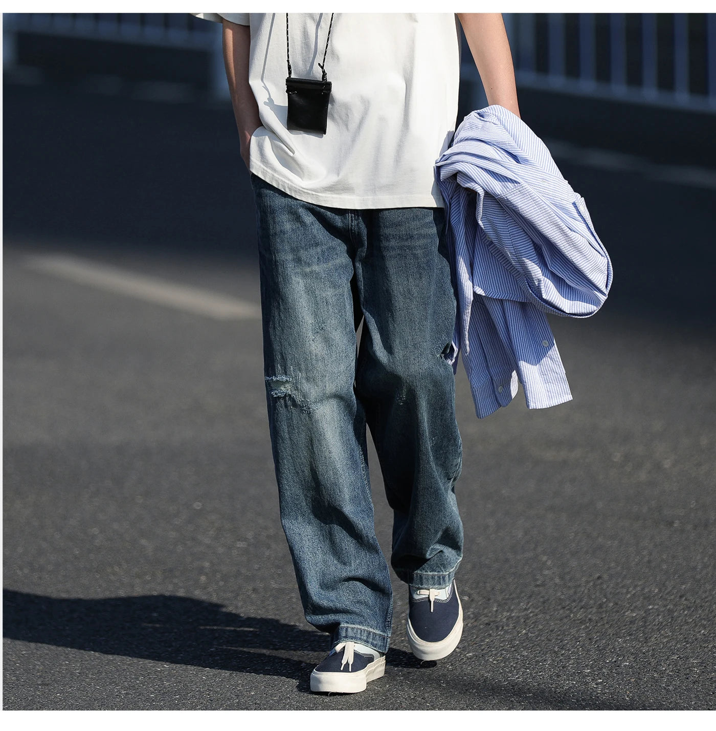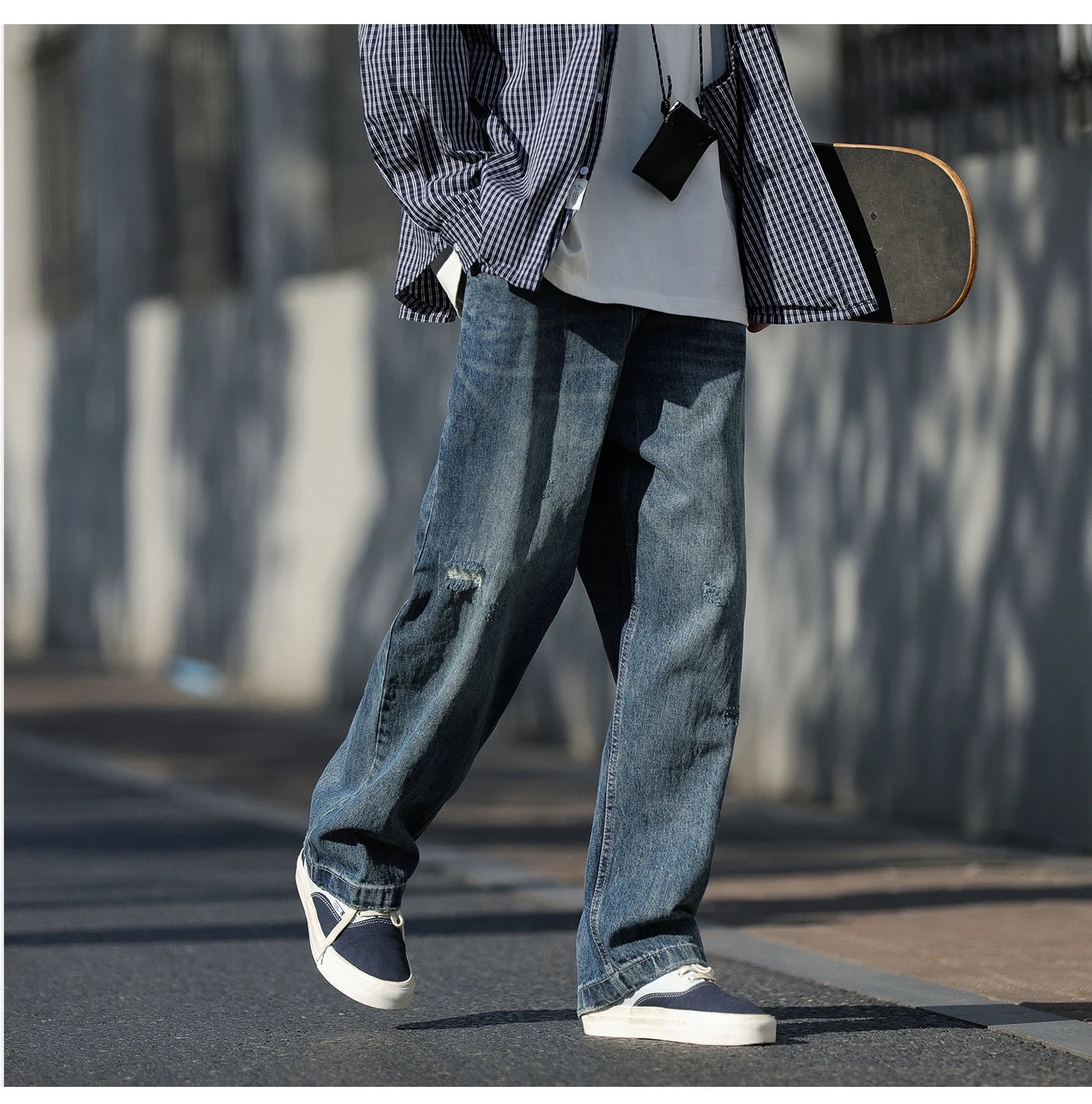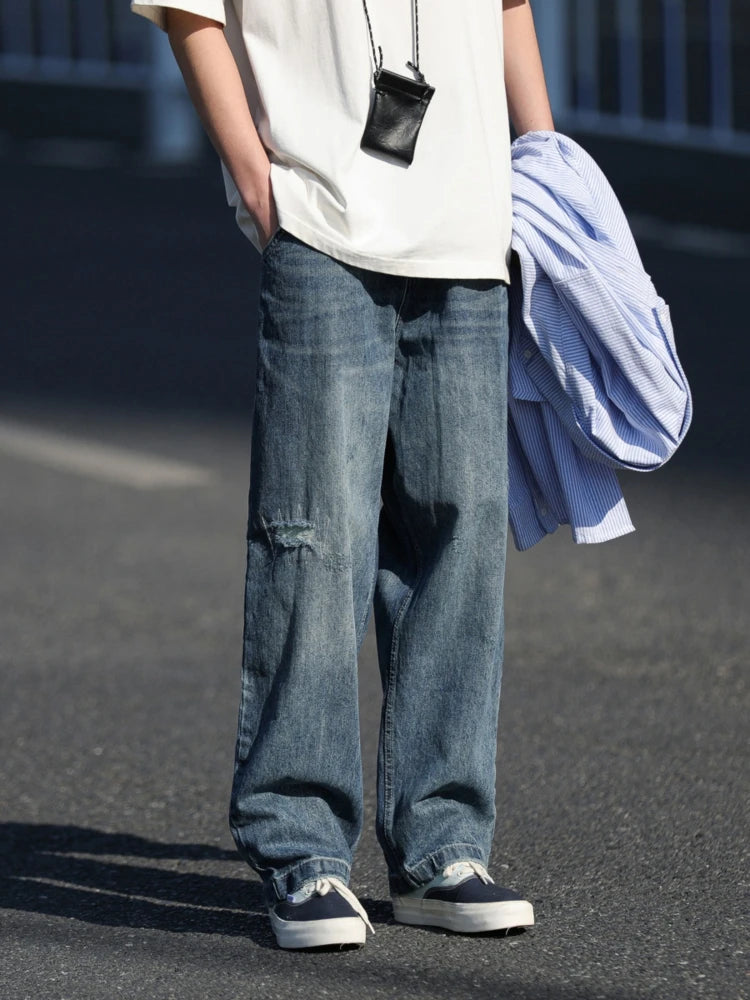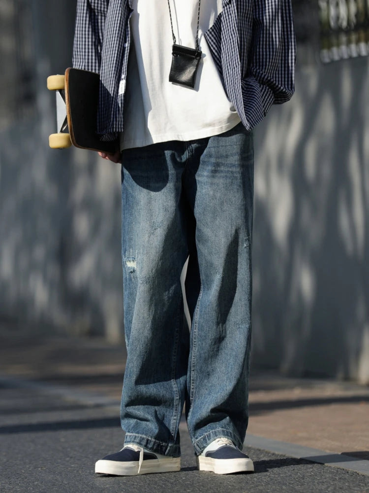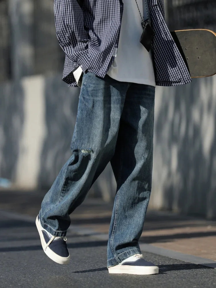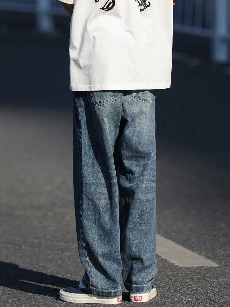 WIAOFELLAS - Autumn Jeans Men Frayed Baggy All-match Hip Hop Harajuku Full Length American Style High Street Popular Washed Denim Trousers