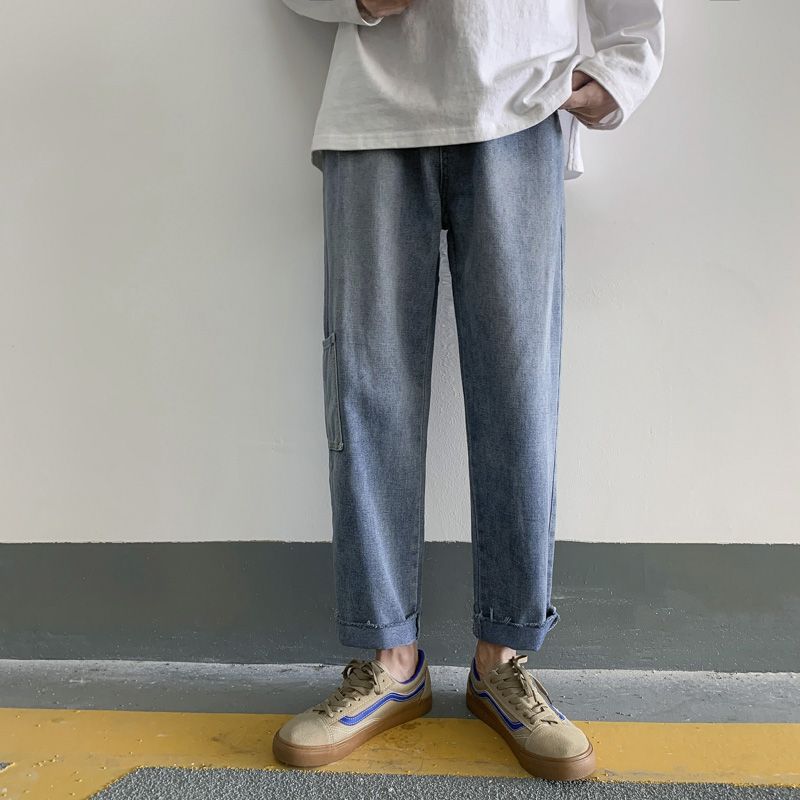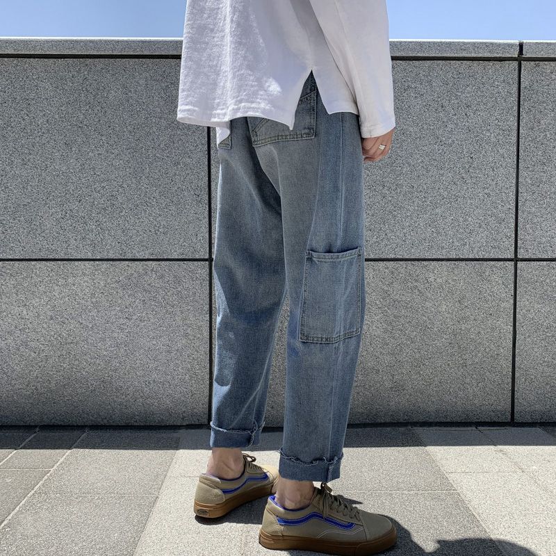 WIAOFELLAS - Autumn New Harajuku Fashion High Street Hiphop Pants Straight Wide Leg Pants Men Casual Loose Big Pockets Cargo Jeans