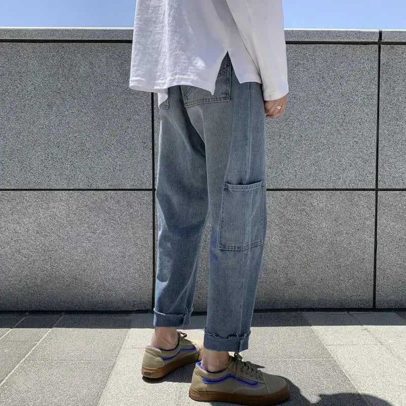 WIAOFELLAS  -  Autumn New Harajuku Fashion High Street Hiphop Pants Straight Wide Leg Pants Men Casual Loose Big Pockets Cargo Jeans