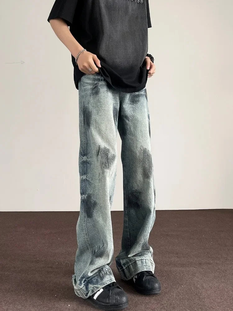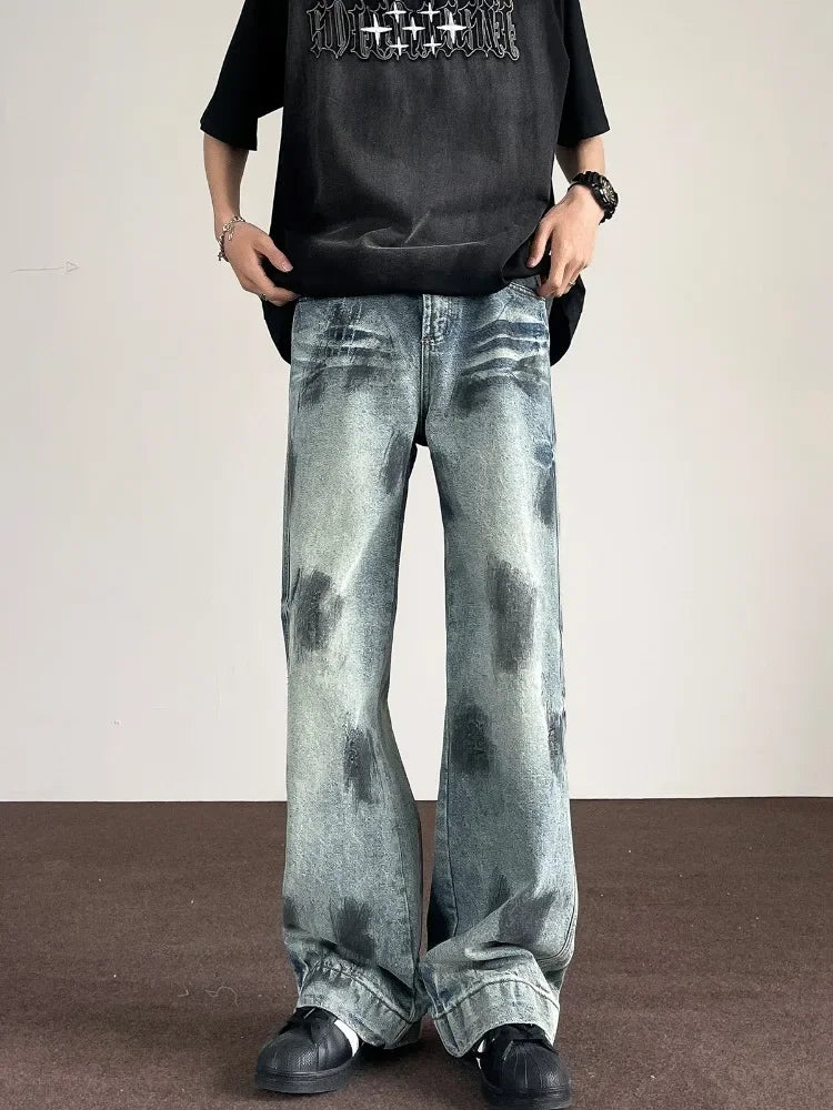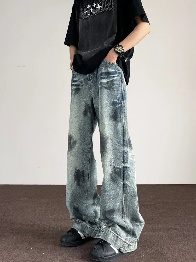 WIAOFELLAS  -  Autumn Retro Distressed Tie-dye Jeans Men‘s Handsome Loose Casual High Street Wide Leg Pants Men Trousers Male