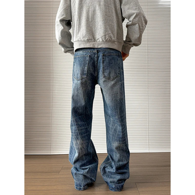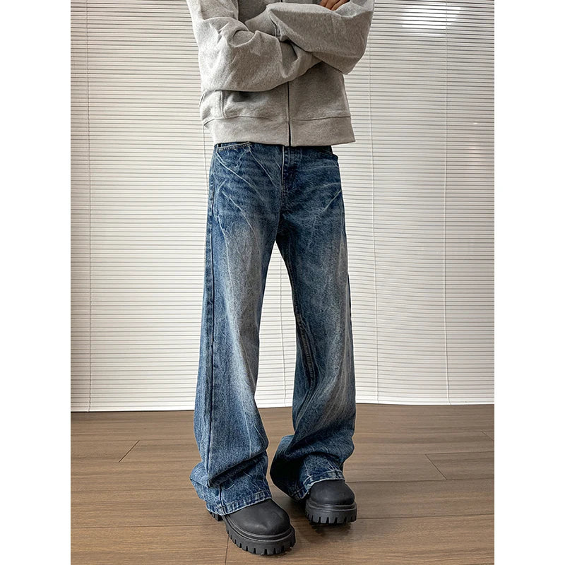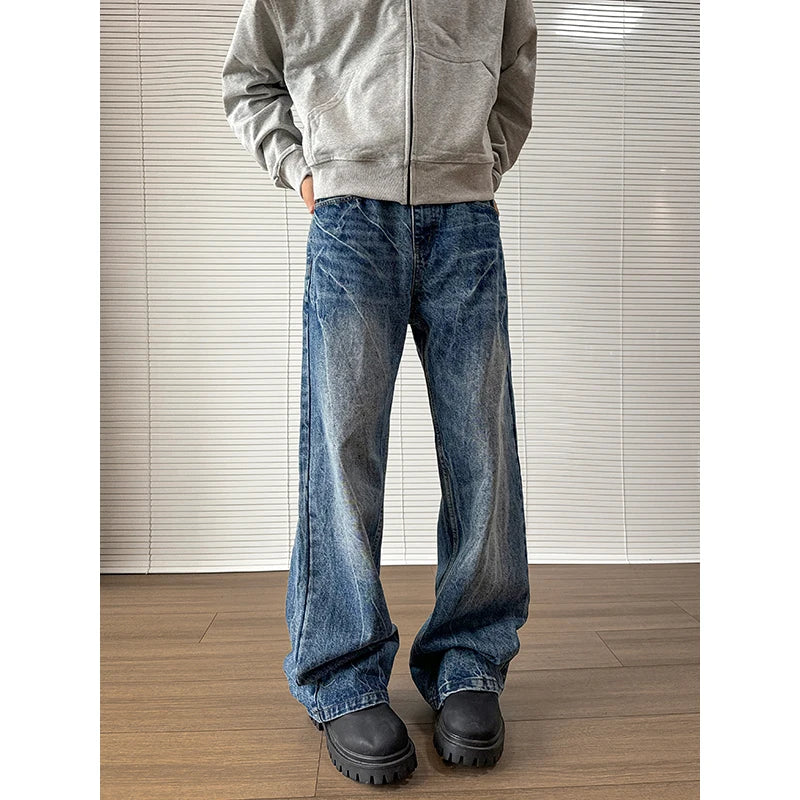 WIAOFELLAS - Baggy Jeans Men's Denim Pants Blue Acid Wash Male Jeans Straight Casual Menwear Loose Wide Leg Trousers New Mopping pants