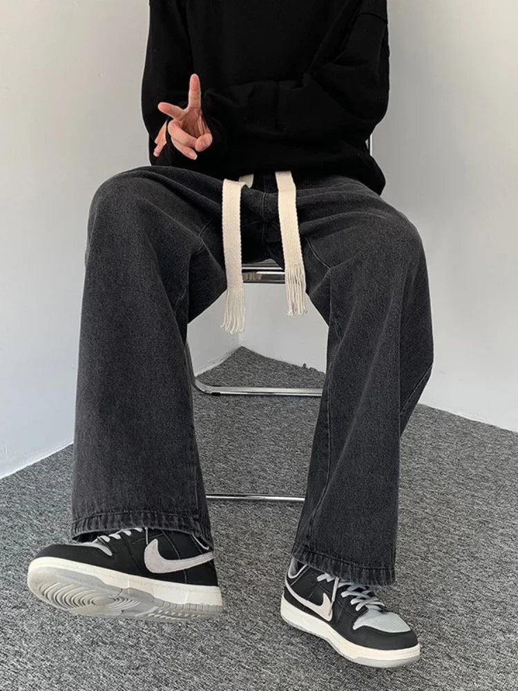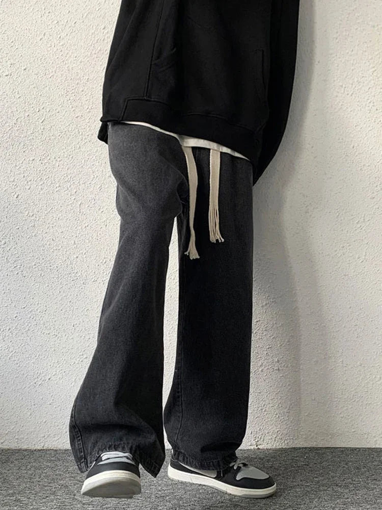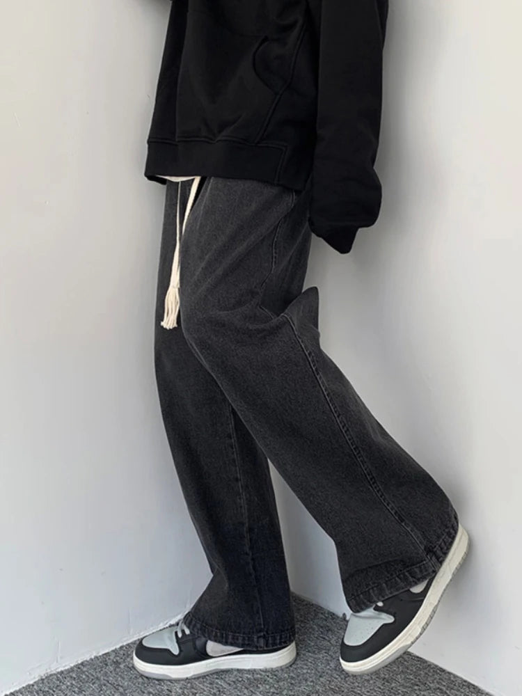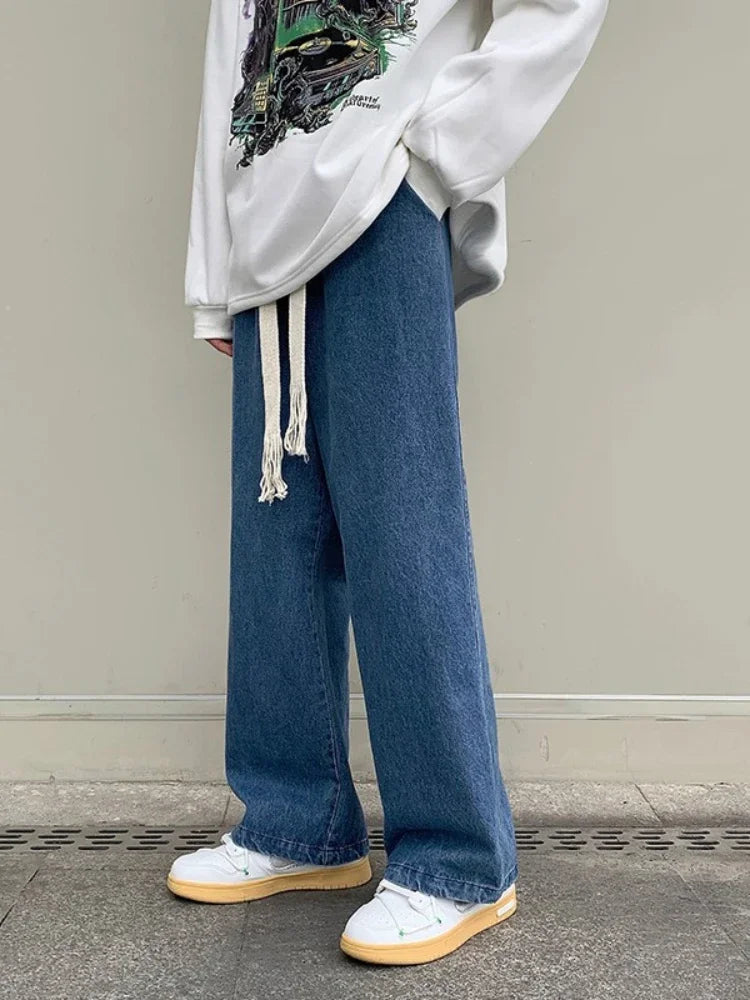 WIAOFELLAS - Black/Blue Baggy Jeans Men Fashion Retro Casual Wide-leg Pants Men Streetwear Loose Straight Denim Pant Mens Trousers