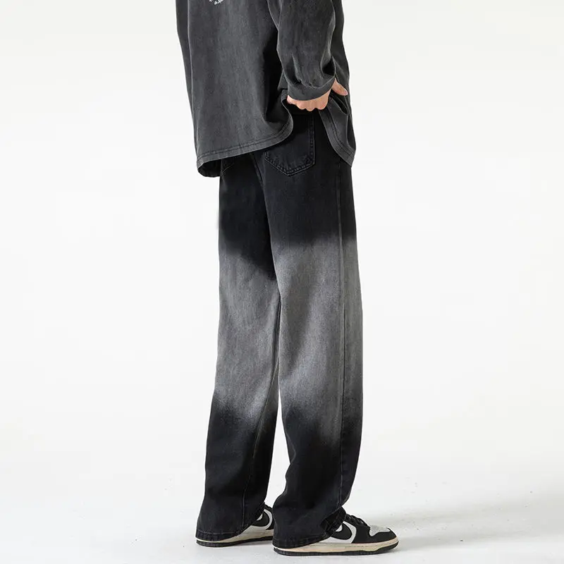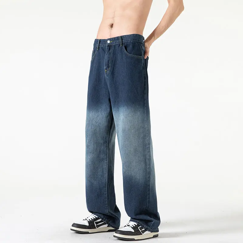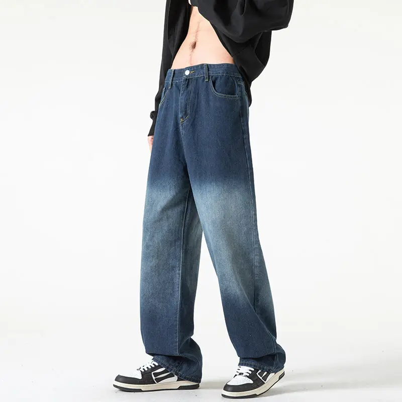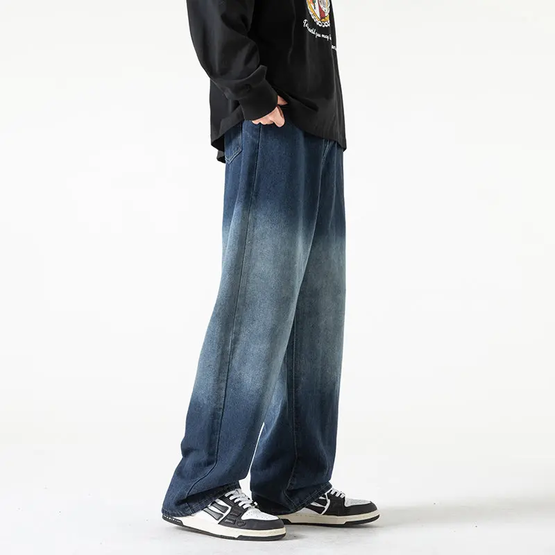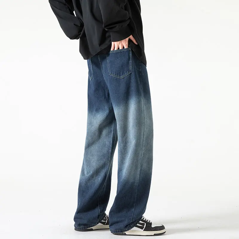 Wiaofellas Blue Black Baggy Jeans Men Fashion Retro Gradient Jeans Men Japanese Streetwear Hip-hop Loose Straight Denim Pants Mens Trousers