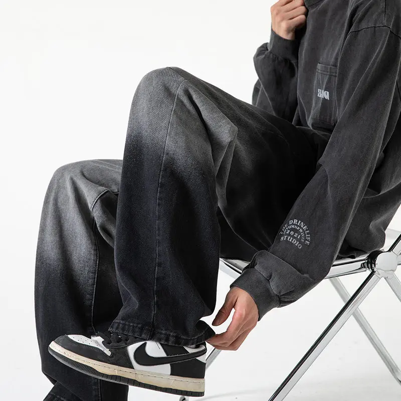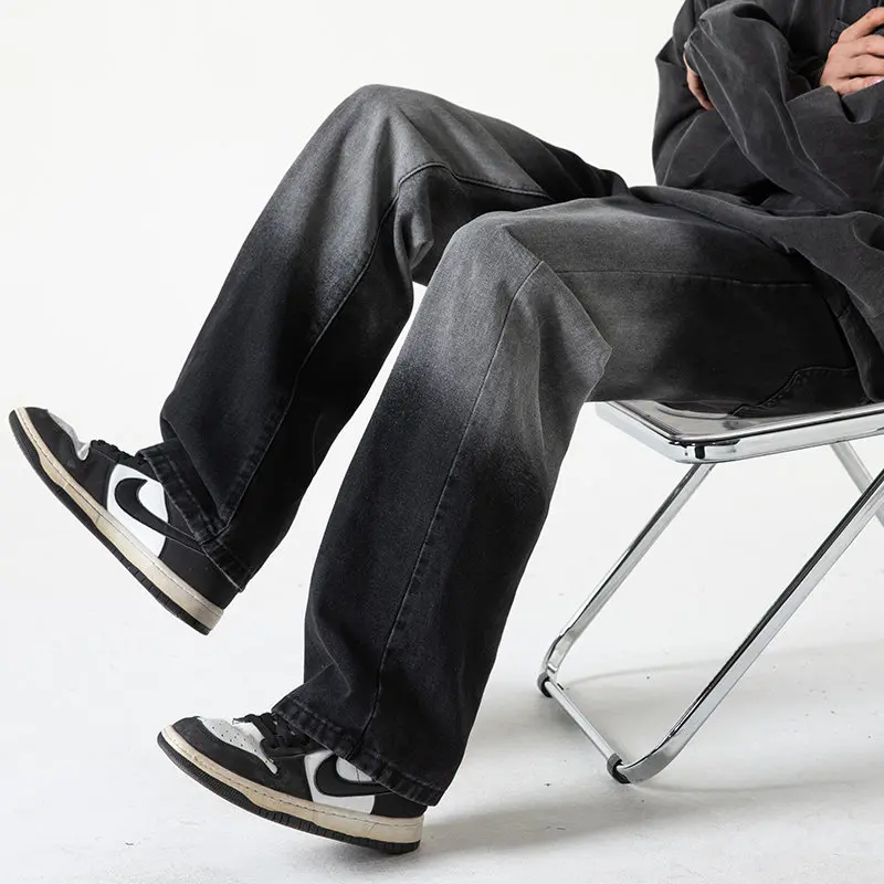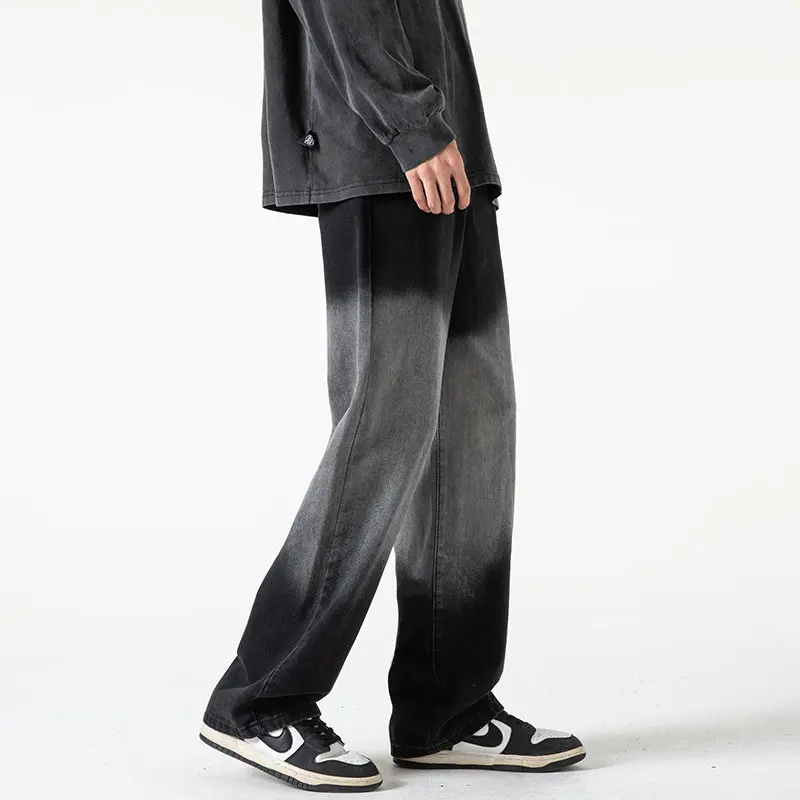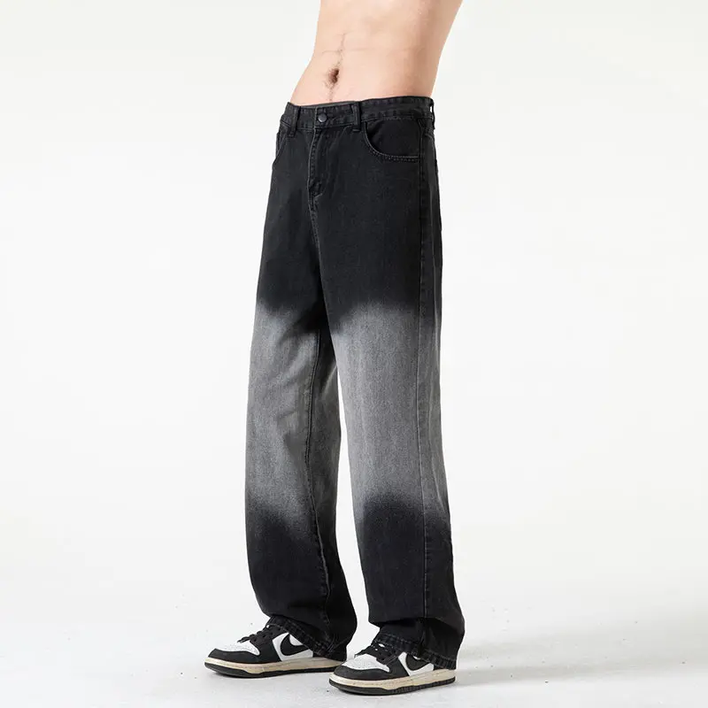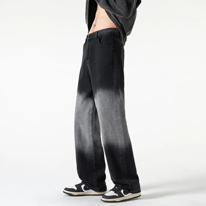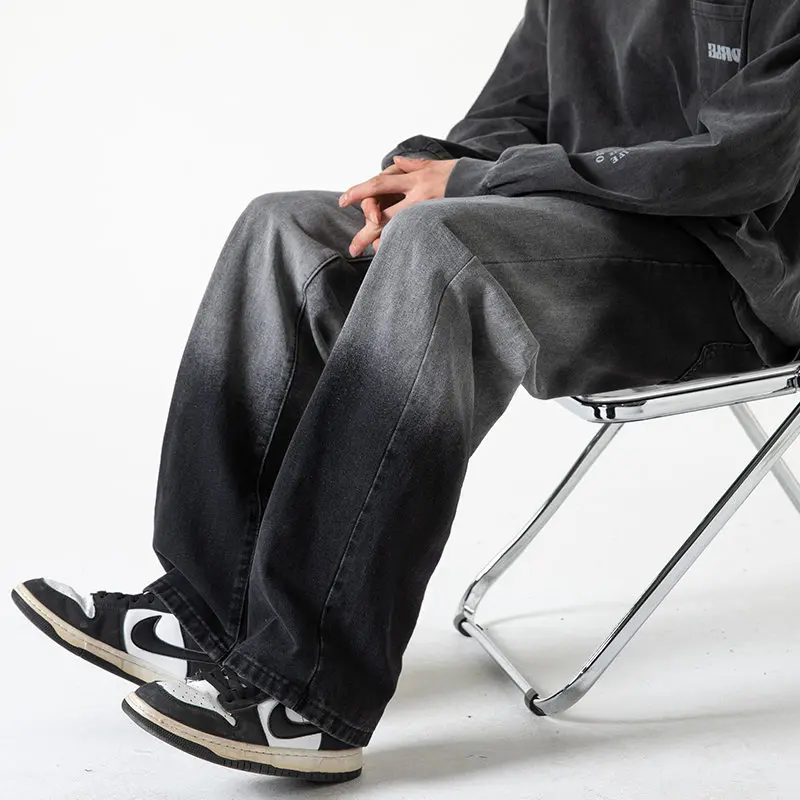 Wiaofellas Blue Black Baggy Jeans Men Fashion Retro Gradient Jeans Men Japanese Streetwear Hip-hop Loose Straight Denim Pants Mens Trousers