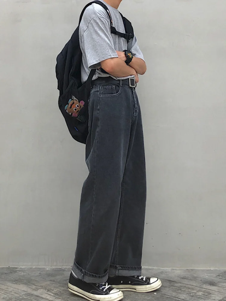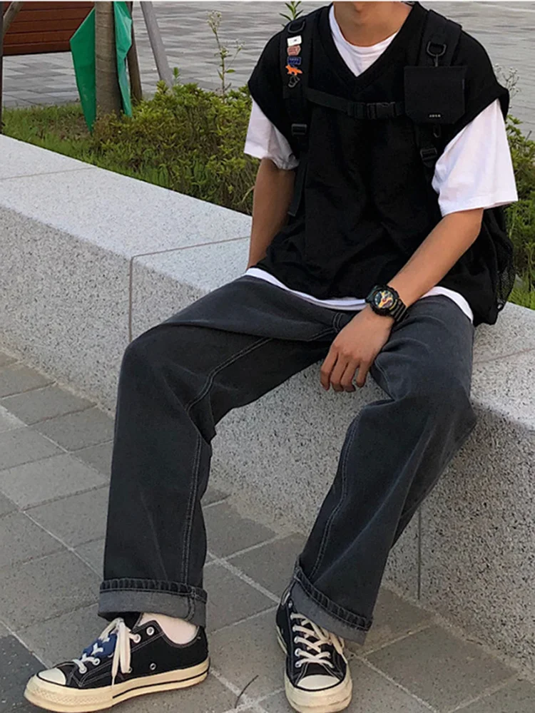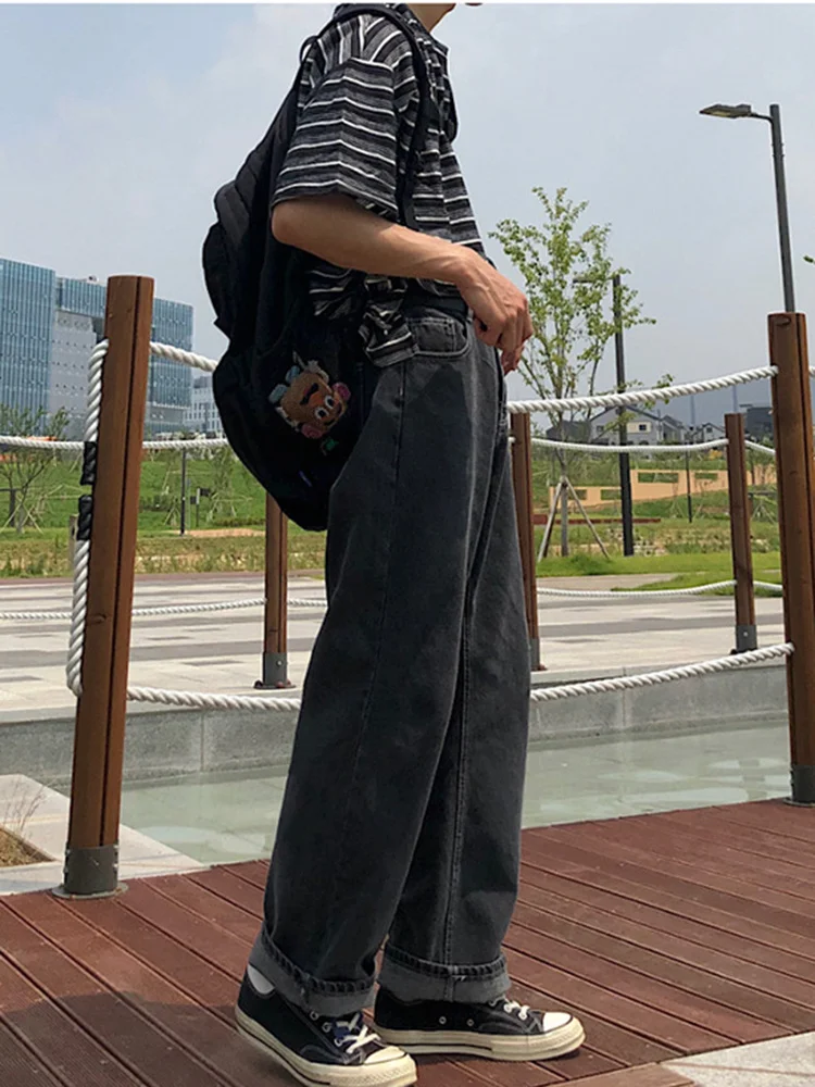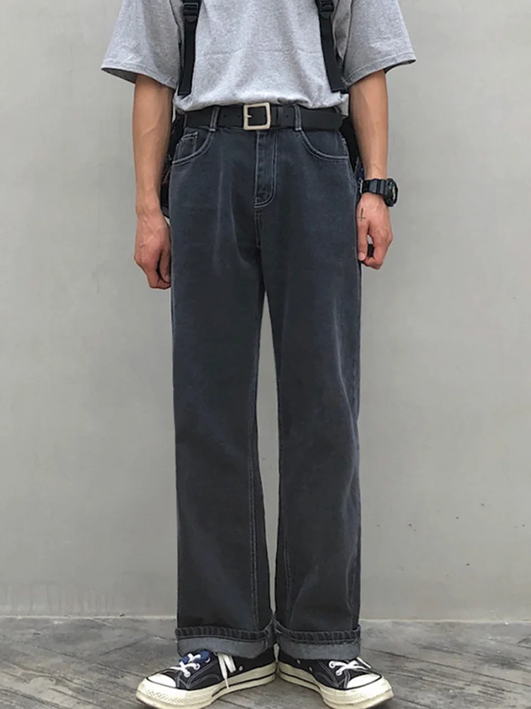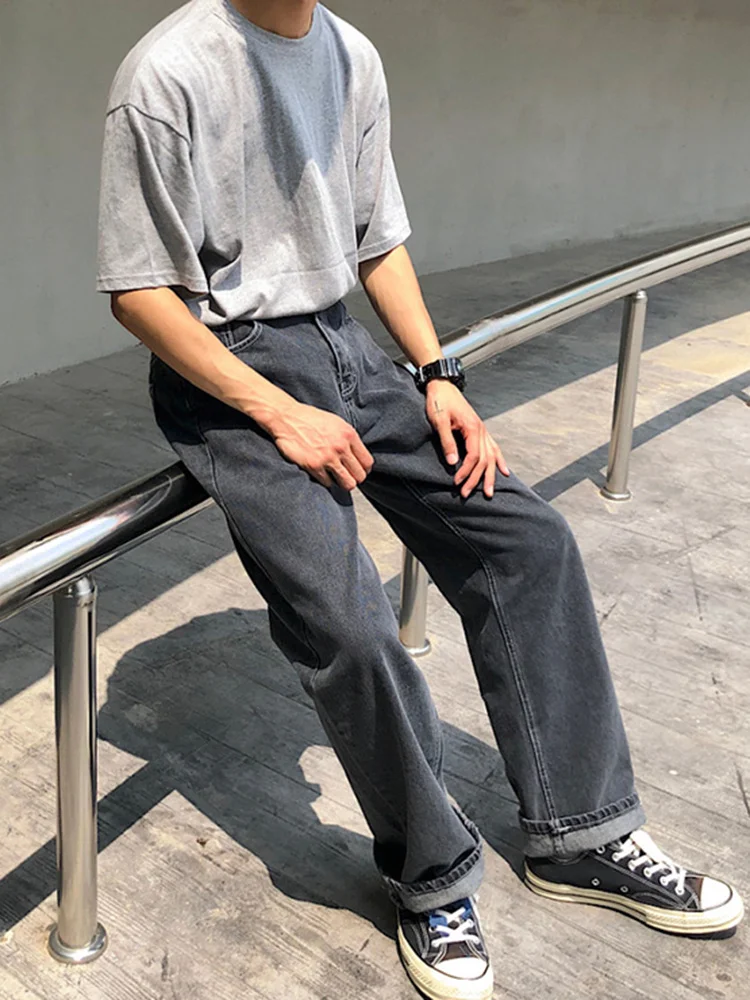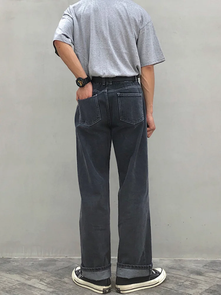 Wiaofellas Casual Men's Straight Mid-rise Jeans New Korean Style Trousers Wide Loose Simple solid color Trousers 2A2132 |