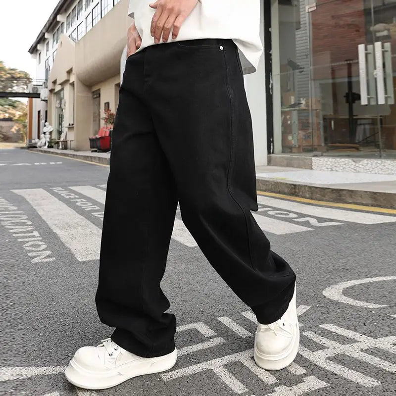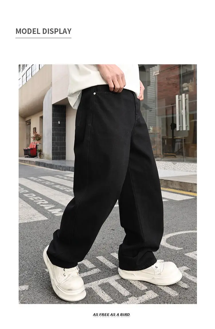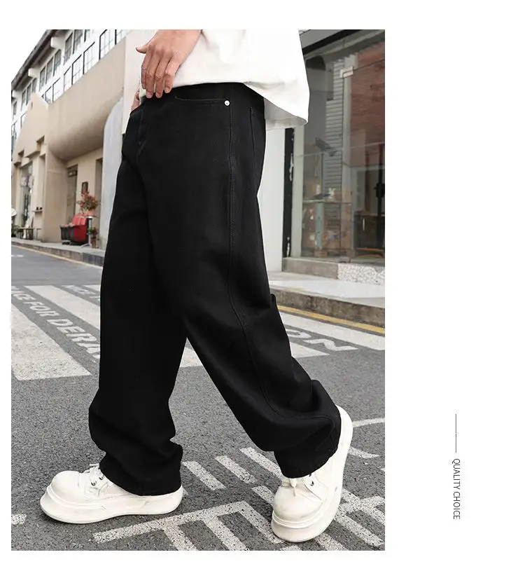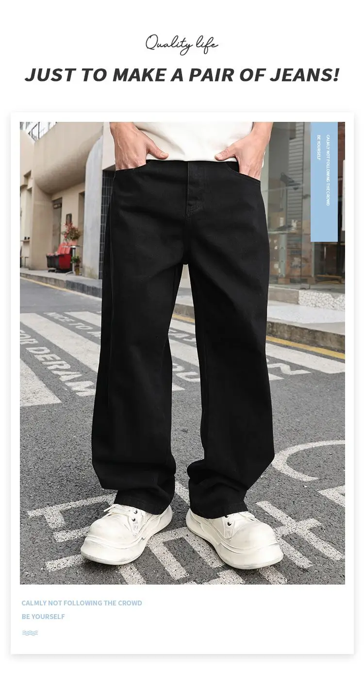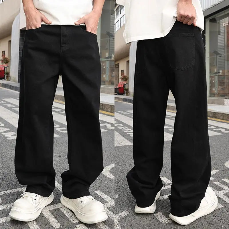 WIAOFELLAS  -  Classic Design Black Jeans Men Straight Leg Baggy Fit Mid Weight Denim Pants New