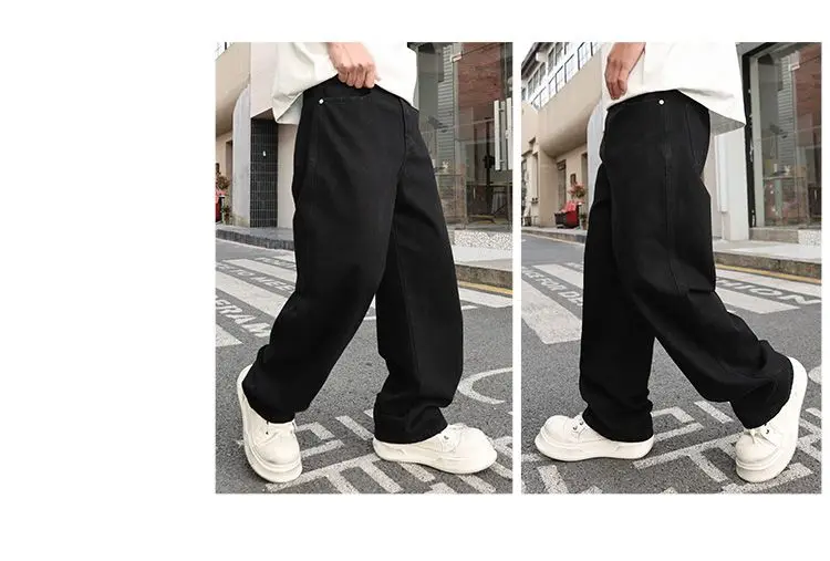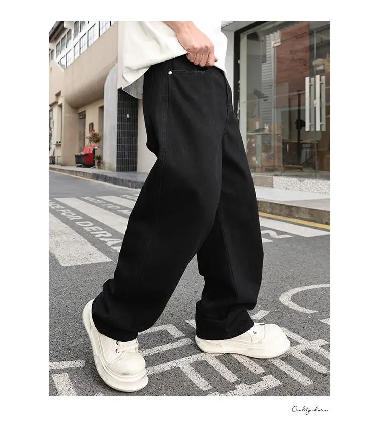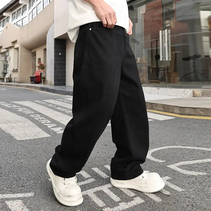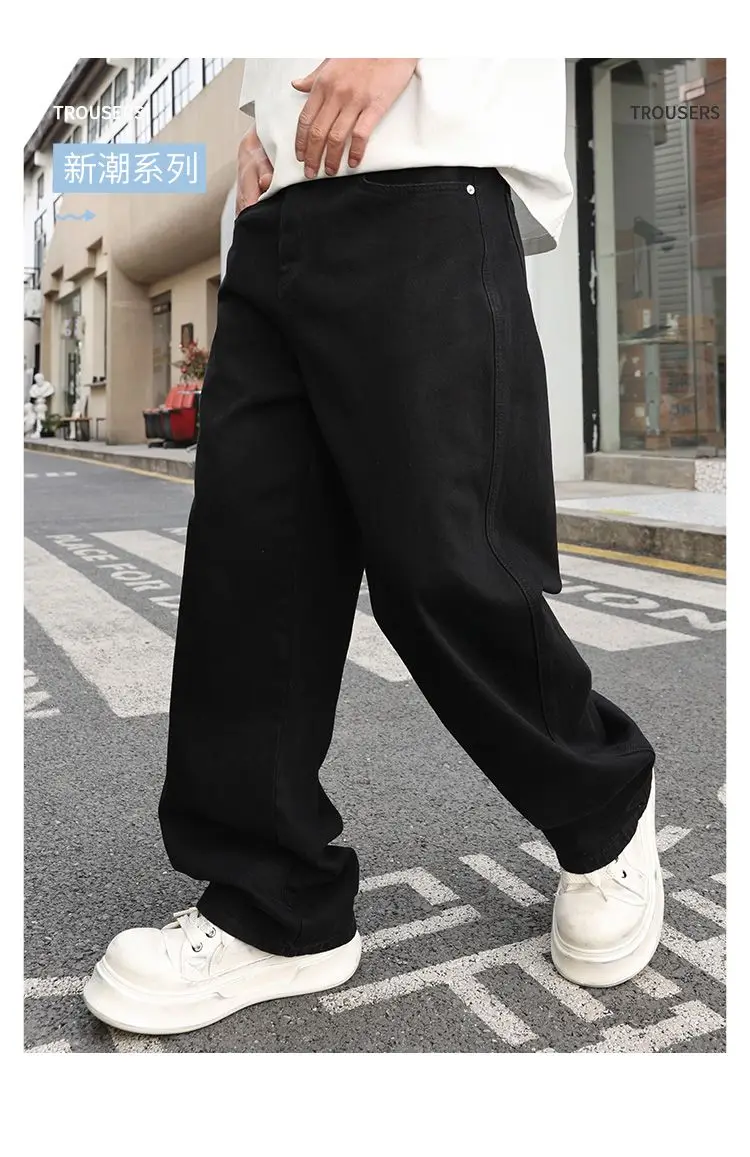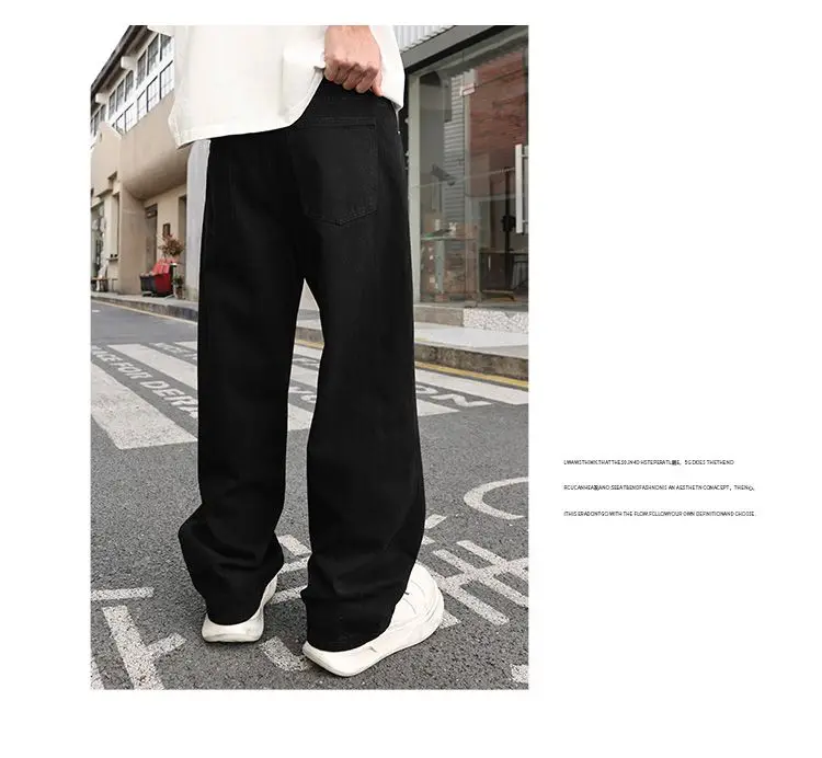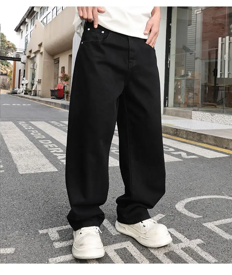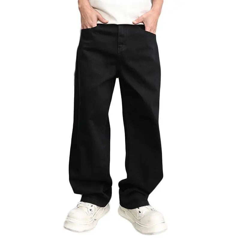 WIAOFELLAS  -  Classic Design Black Jeans Men Straight Leg Baggy Fit Mid Weight Denim Pants New