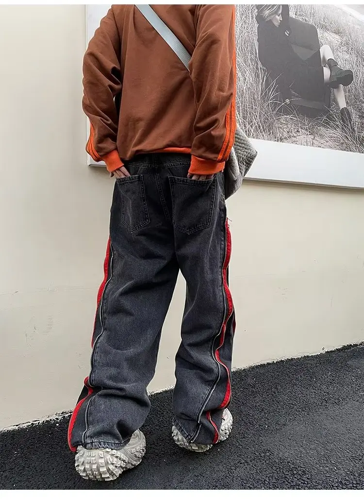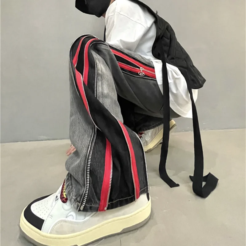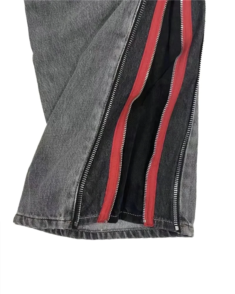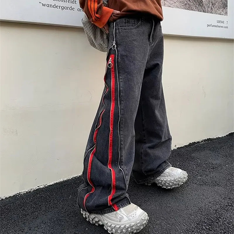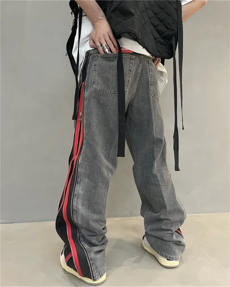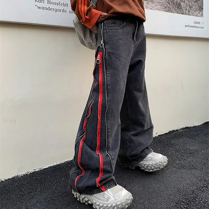 Wiaofellas - Cool Design Side Zipper Oversize Hip Hop Men Wide Jeans Pants Y2K Clothes Straight Loose Punk Denim Trousers Pantalon Homme